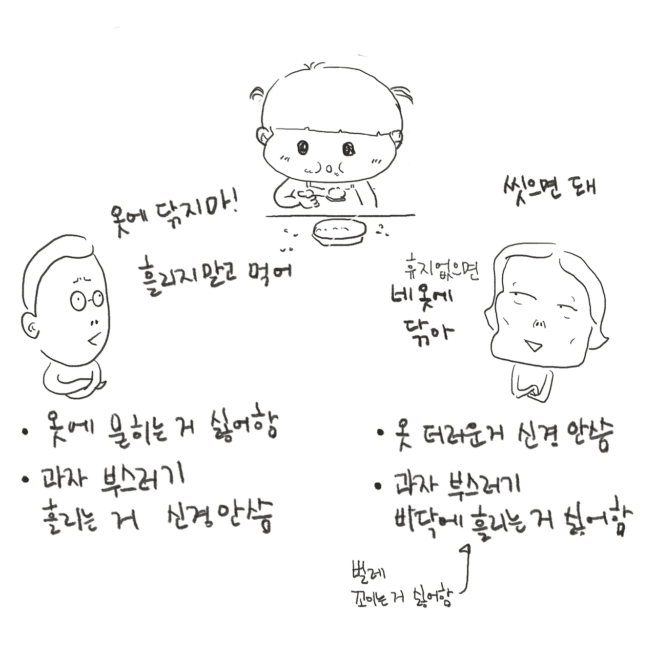 결혼 준비할 때부터도 많이 삐걱거렸지만, 출산하는 과정부터 지금까지 남편과 나의 크고 작은 갈등은 계속 진행 중이다. 초반에는 아이를 위해 희생해야 하는 게 엄마 역할이라는 남편의 생각과 내가 편해야 아이도 행복하다는 내 생각이 충돌해서 생긴 갈등이 많았다. 의견과 의견이 충돌한 것이다.