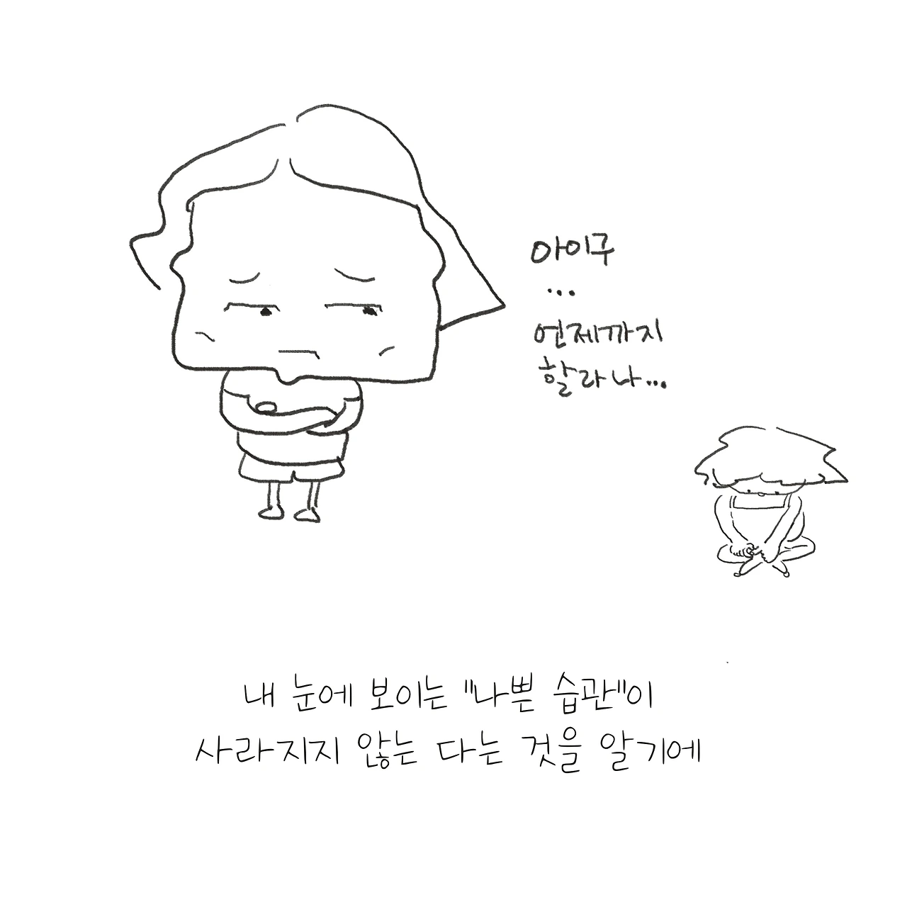 내 아이에게 몇 가지 나쁜 습관들이 있다. 하나의 행동을 꾸준히 하는 게 아니라 이거 했다 저거 했다. 하지 않았으면 하는 행동들을 번갈아 가며 생각 없이 한다. 지금은 손톱 밑에 살 뜯기에 여념 없다. 아프다고 하면 약도 발라주는데 상처가 아물 날이 별로 없다. 손톱 밑이 벌겋게 부어있다.
