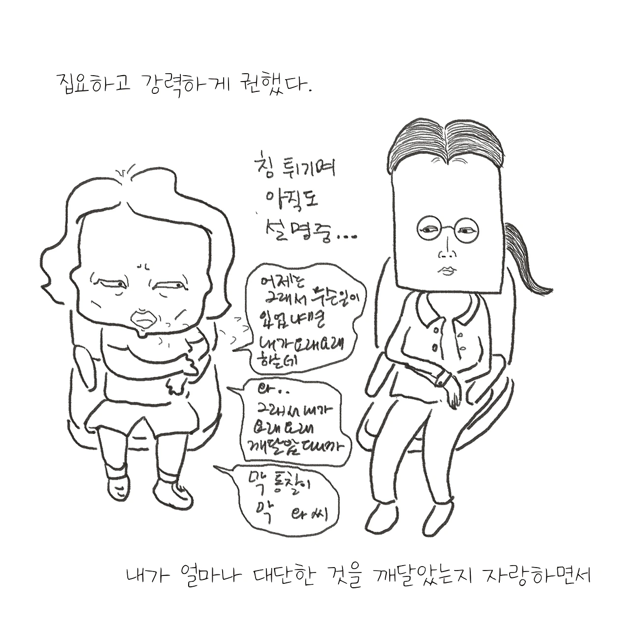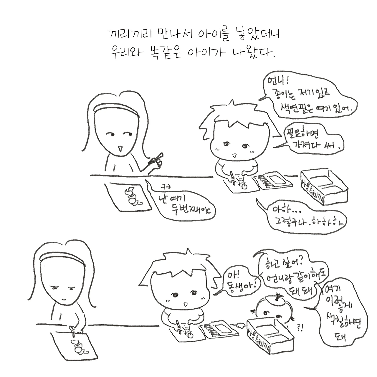 어제는 아이와 박물관에 다녀왔다. 한쪽에 그림을 그리는 곳이 있었는데 아이는 자리에 앉아 그림을 그리기 시작했다. 다른 아이들도 한 명씩 들어와서 두리번거리자 아이가 설명을 해주기 시작했다. 종이와 펜이 어디 있는지, 무엇을 하면 되는지 말이다. 본인보다 더 나이 많은 언니에게 아는 척했다. 언니가 자기는 여기 두 번째라고 다 안다고 하자, 아이는 멋쩍은 듯 웃었다. 그 뒤로도 동생들이 오면 잘 걷지도 못하는 아이들에게 그림 그려보라며, 자기 종이에 그려도 된다고 너그러운 척도 했다. ㅋㅋㅋ