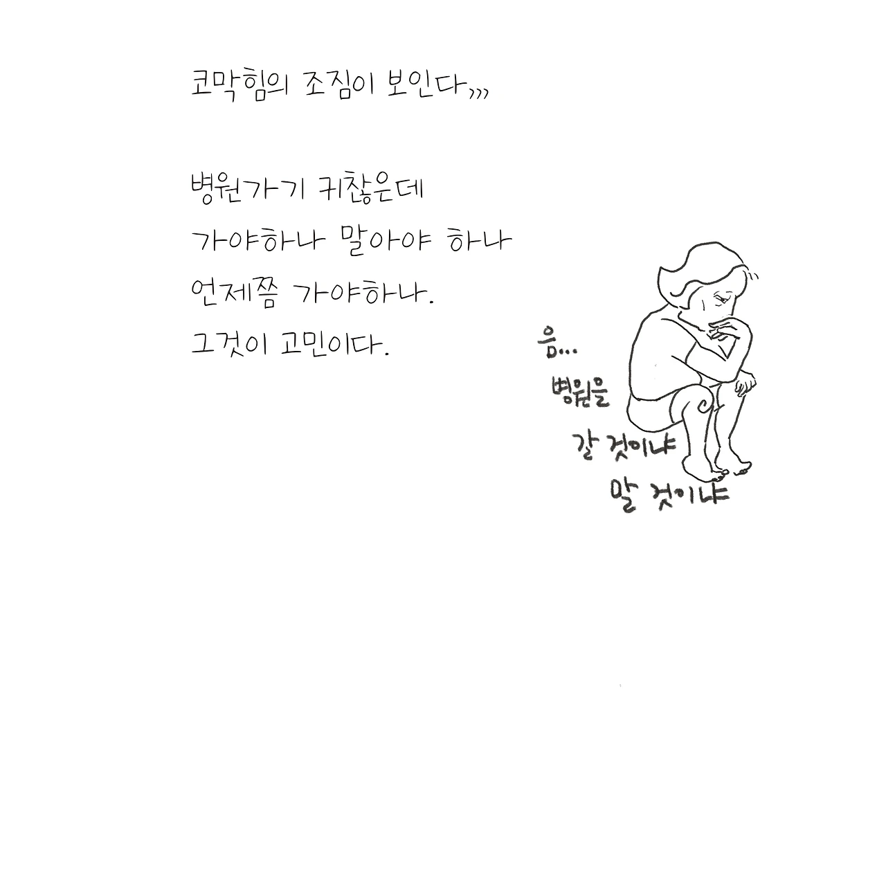 지난주부터 콧물이 목뒤로 넘어가는 소리가 계속 들리지만 병원 가기를 미룬다. 요즘 소아과 진료를 받으러 가면 대기만 한 시간이 넘으니 가기가 꺼려진다. 게다가 병원 가려면 하원도 일찍 해야 한다. 여차여차 귀찮아서 열이 나기 전에는 잘 안 가게 되는데. 이번 주말에도 아이가 잘 버텨주기를 바랄 뿐이다.