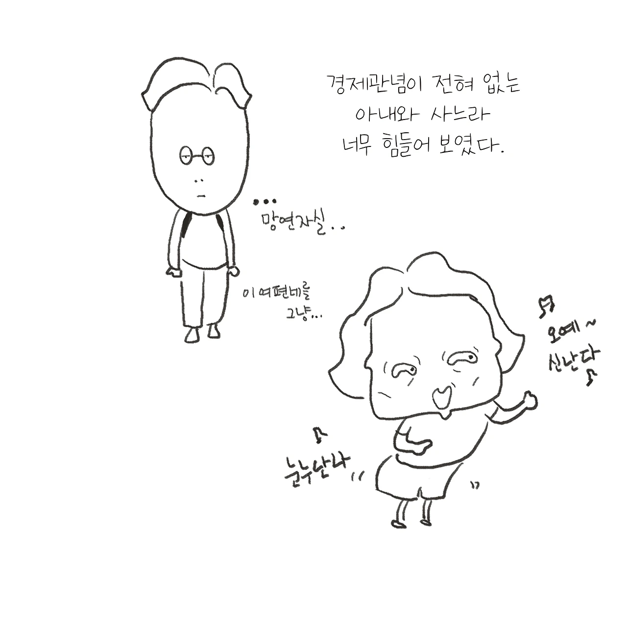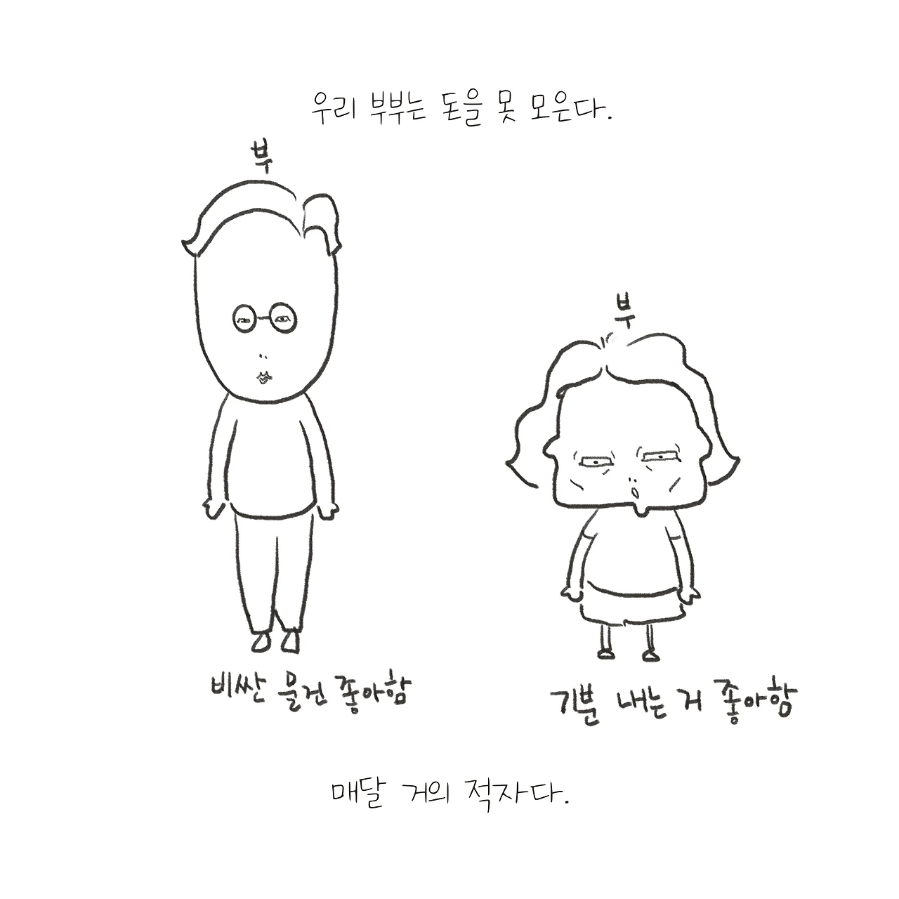 과소비 부부라 적고 생각 없는 아내라 읽는다.