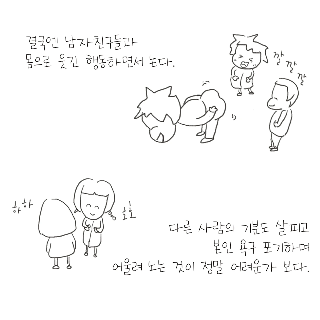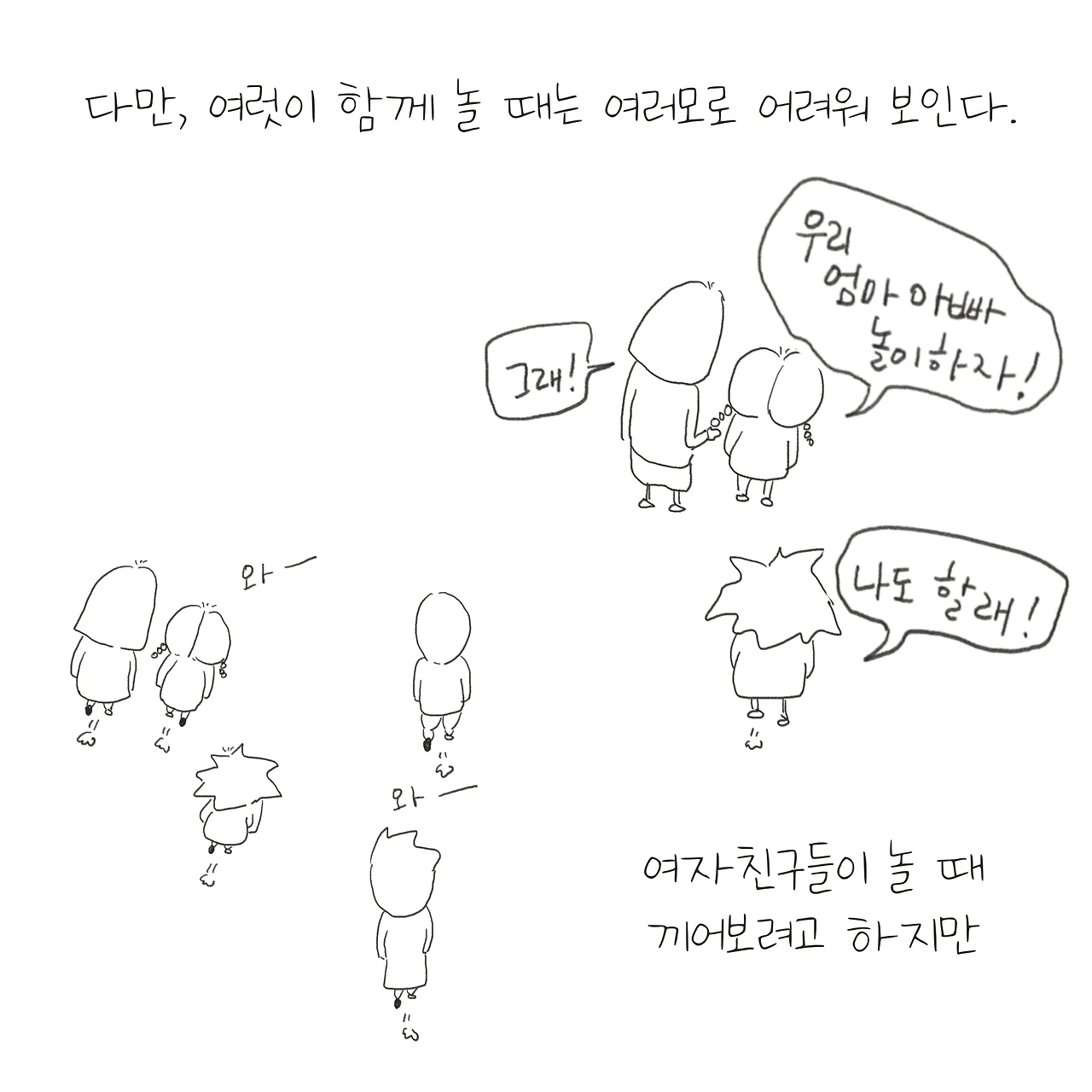 하지만 본인 색깔이 강하다 보니 친구와 놀다가도 본인이 하고 싶은 놀이가 생기면 혼자 놀기 시작한다. 상대 친구는 좀 당황해한다. 나도 당황스럽다. 허허허.