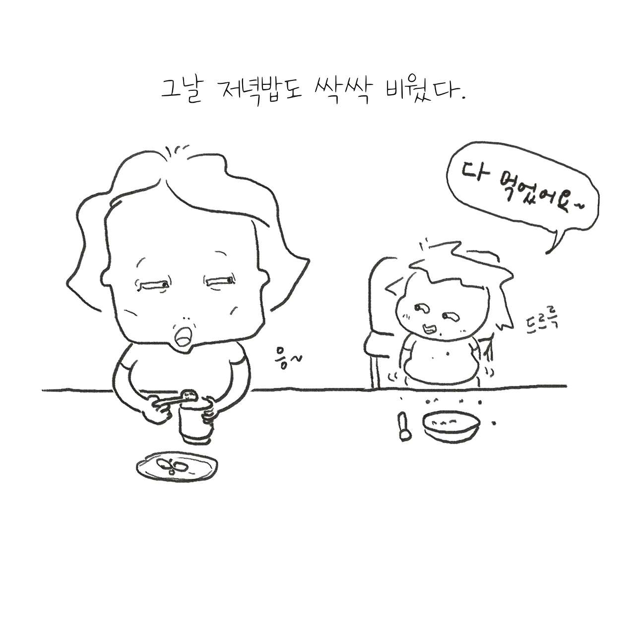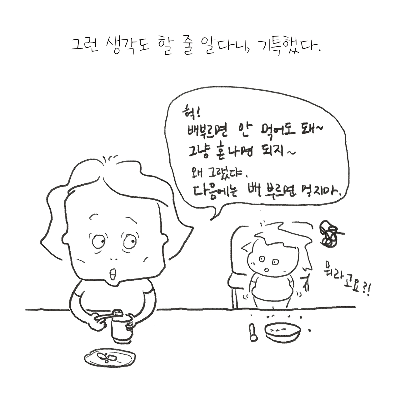 밥을 남기고 엄마한테 혼날까?
