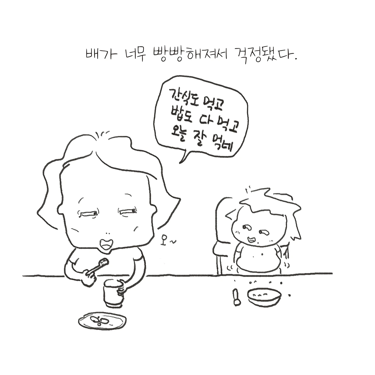 아님, 혼나지 않게 배불러도 다 먹을까?