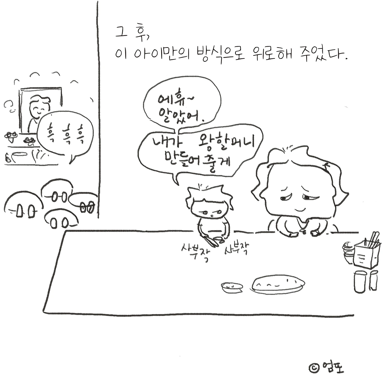 아이답게 서툴지만 커다란 마음이 전달되어 큰 위로가 되었다.