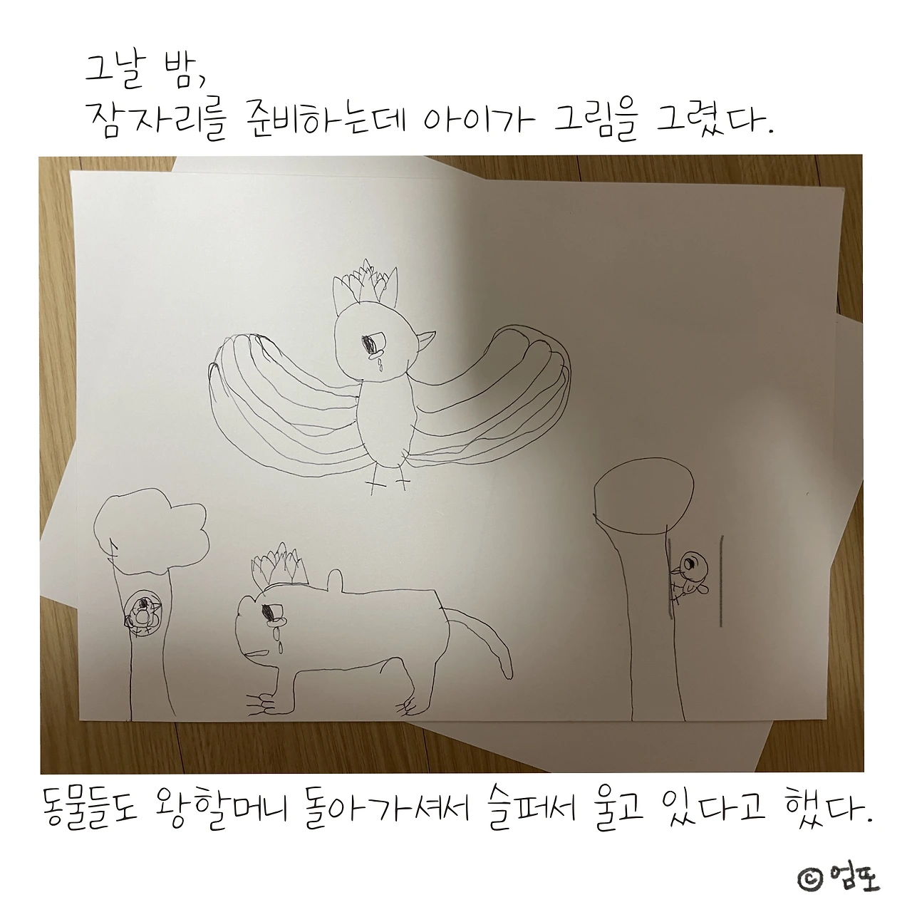 6살이 얼마나 이해했겠냐마는 죽음에 대해 이야기 나눌 수 있는 게 좋았다.