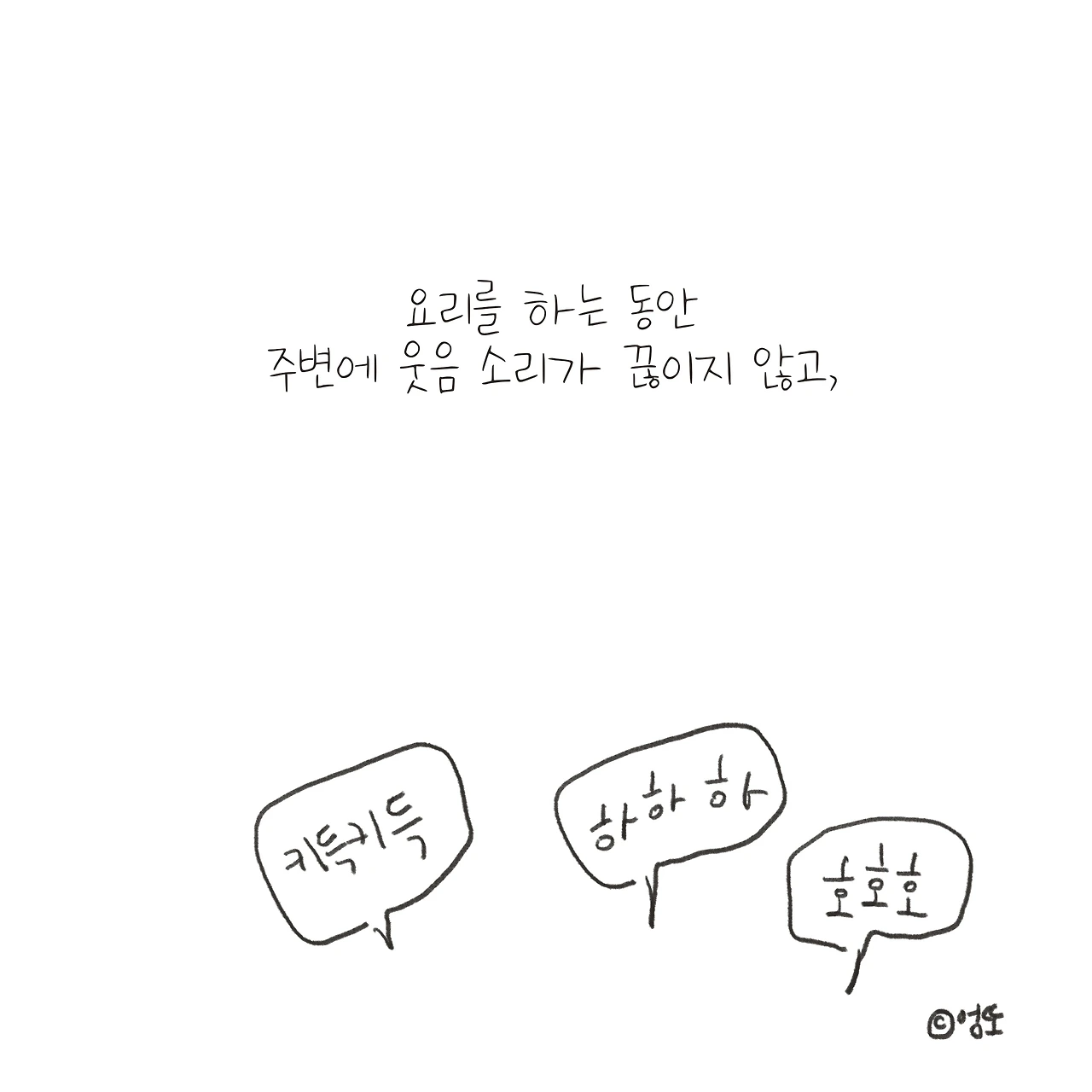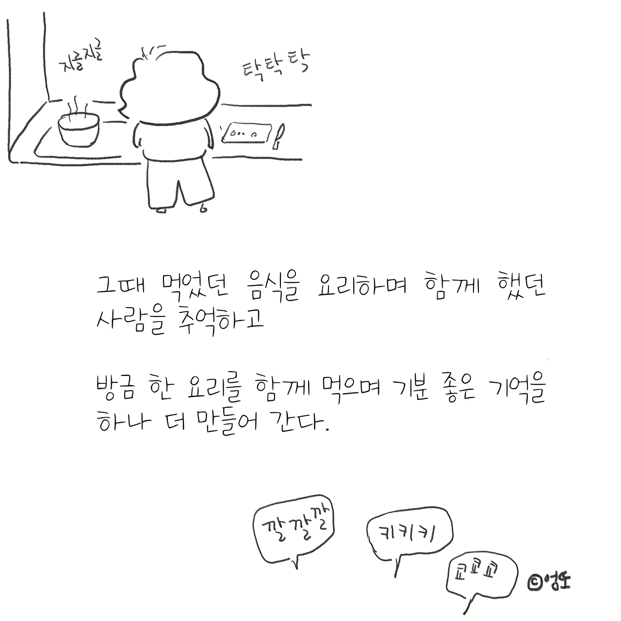 요리를 하기 시작하자 어렸을 때 쌓아뒀던 따뜻했던 기억들이 새록새록 떠올랐다. 어렸을 때 기분 좋은 기억이 많지 않다고 생각했는데 아니었다. 나 혼자 잘 컸다 생각했는데 그것도 아니었다. 그 뒤에 직접 한 음식으로 여러 사람과 나눌 수 있는 경험을 하게 해준 엄마의 요리가 있었다. 겸손하게 감사하며 살아갈 이유가 하나 더 생겼다.