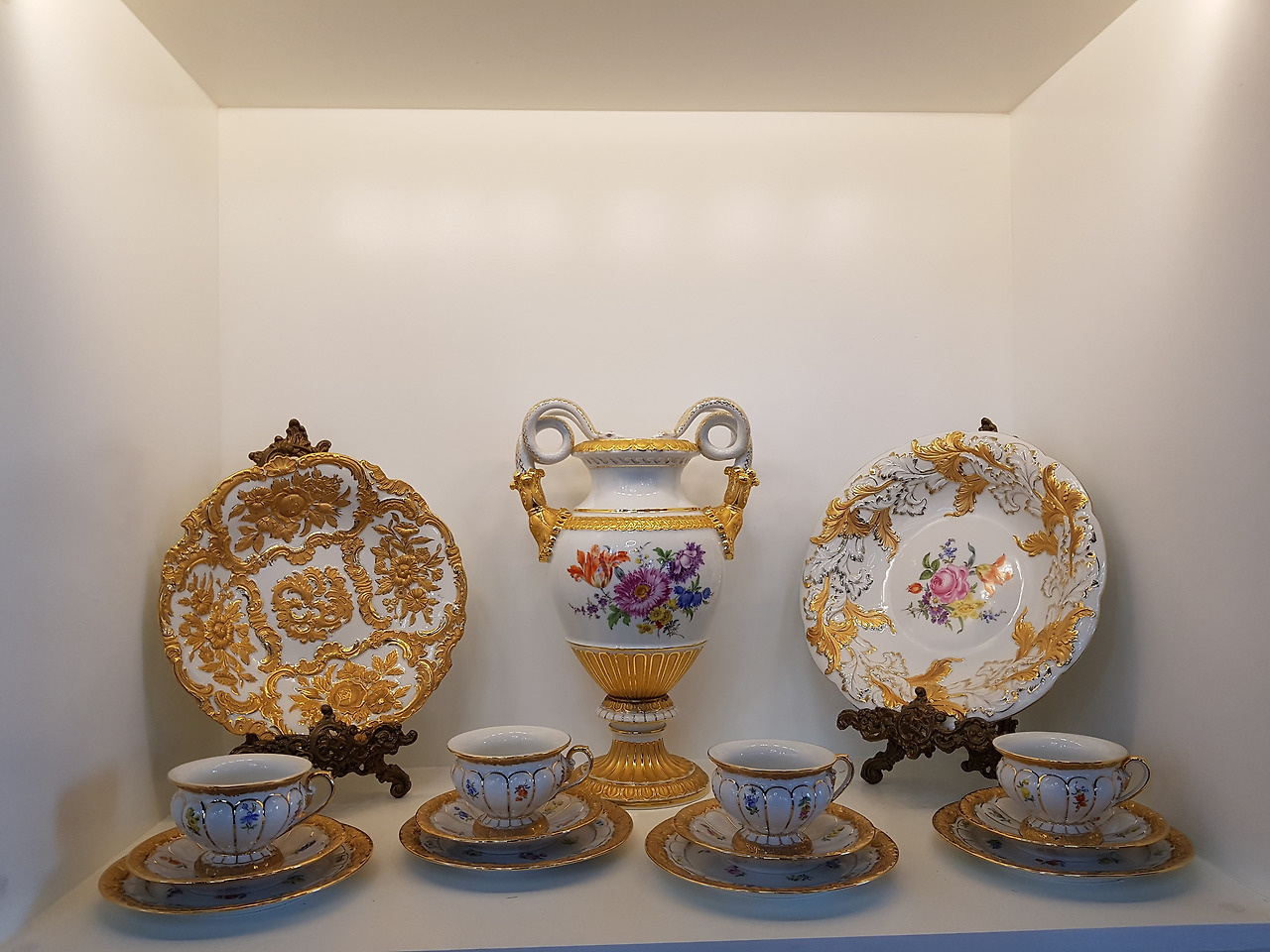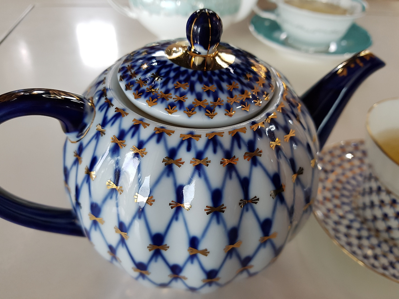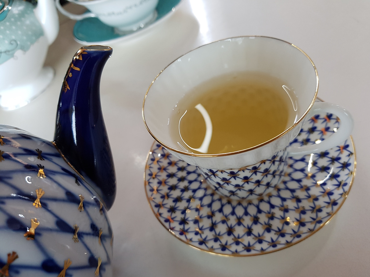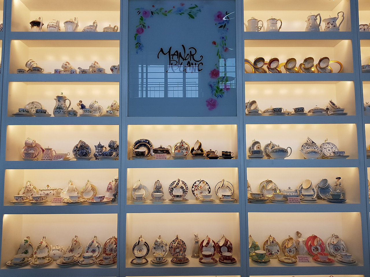 홍차는 그런대로 평범했다, 여느 홍차처럼. 그런데 그 차를 담아내는 도자기 찻잔과 주전자가 클래식한 분위기를 연출하고 무지 고급스러웠다. 그래서 차의 맛도 고급지게 느껴진다. 실내 장식도, 벽면의 장식도 그 우아한 자태를 뽐내는 찻잔과 주전자 세트가 한몫했다.