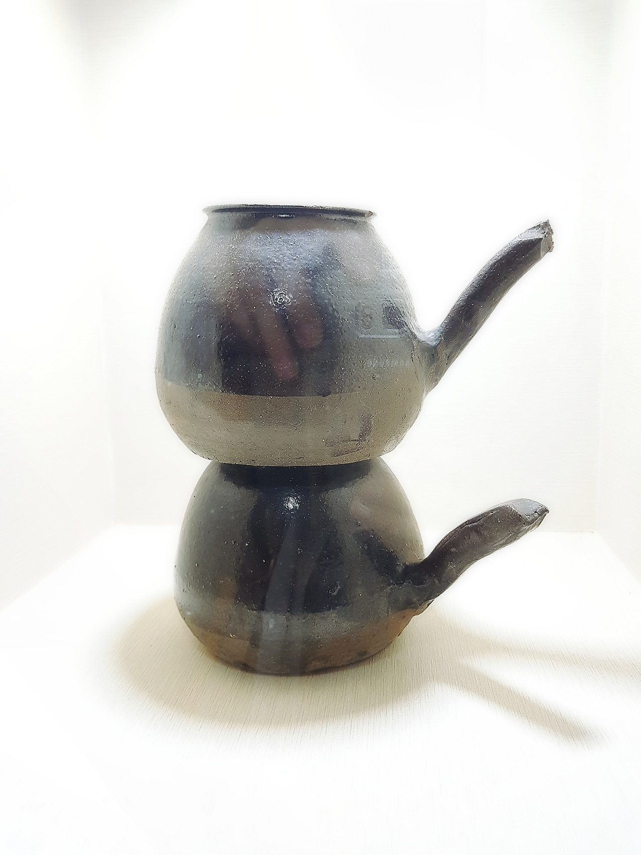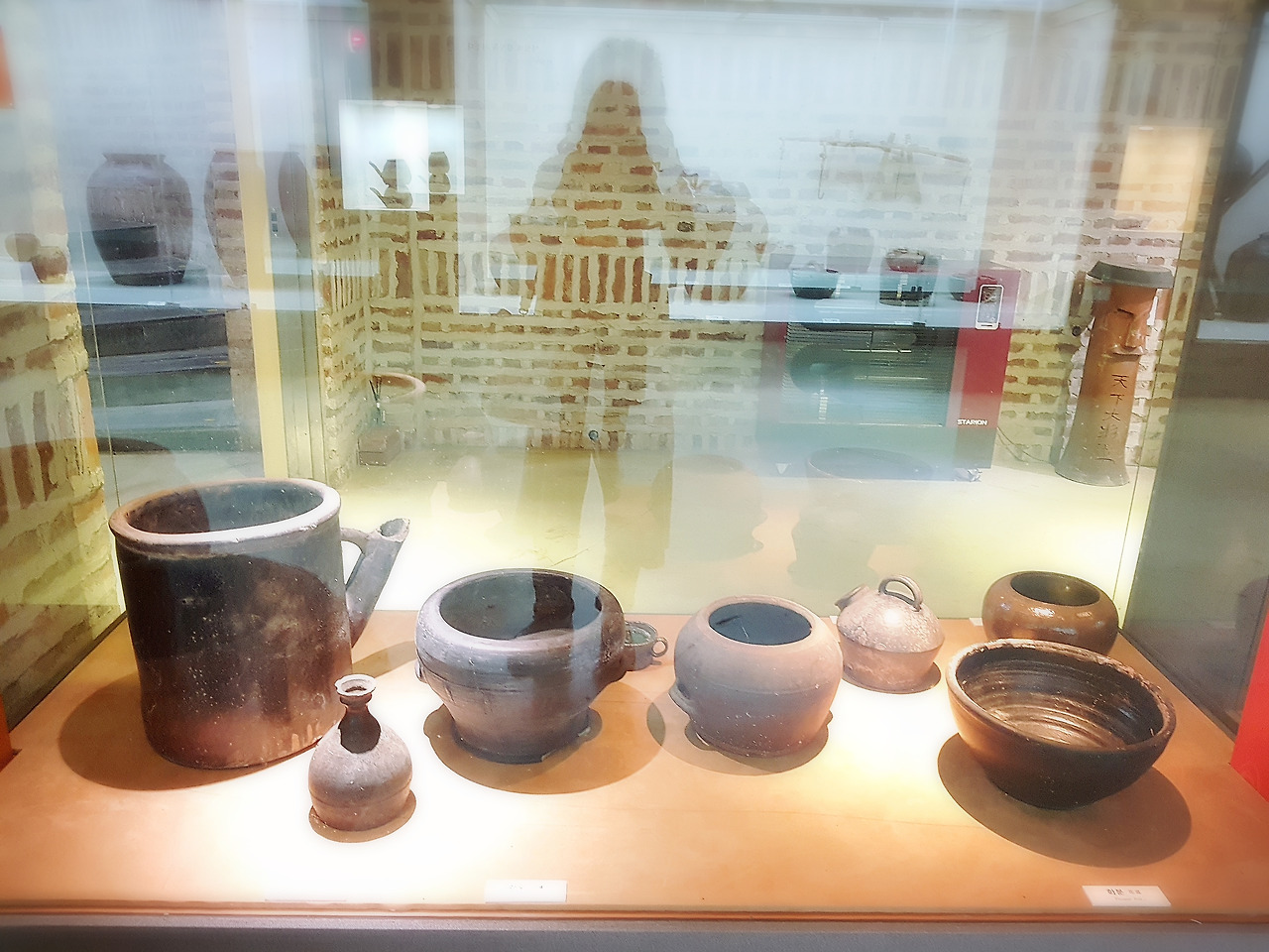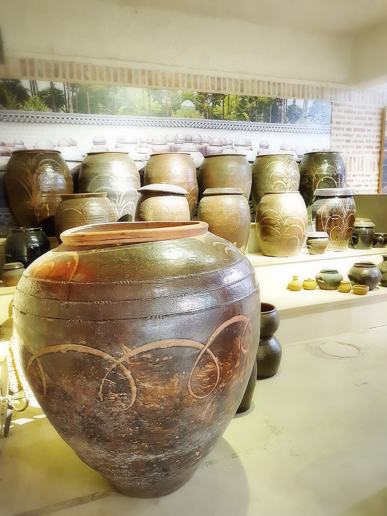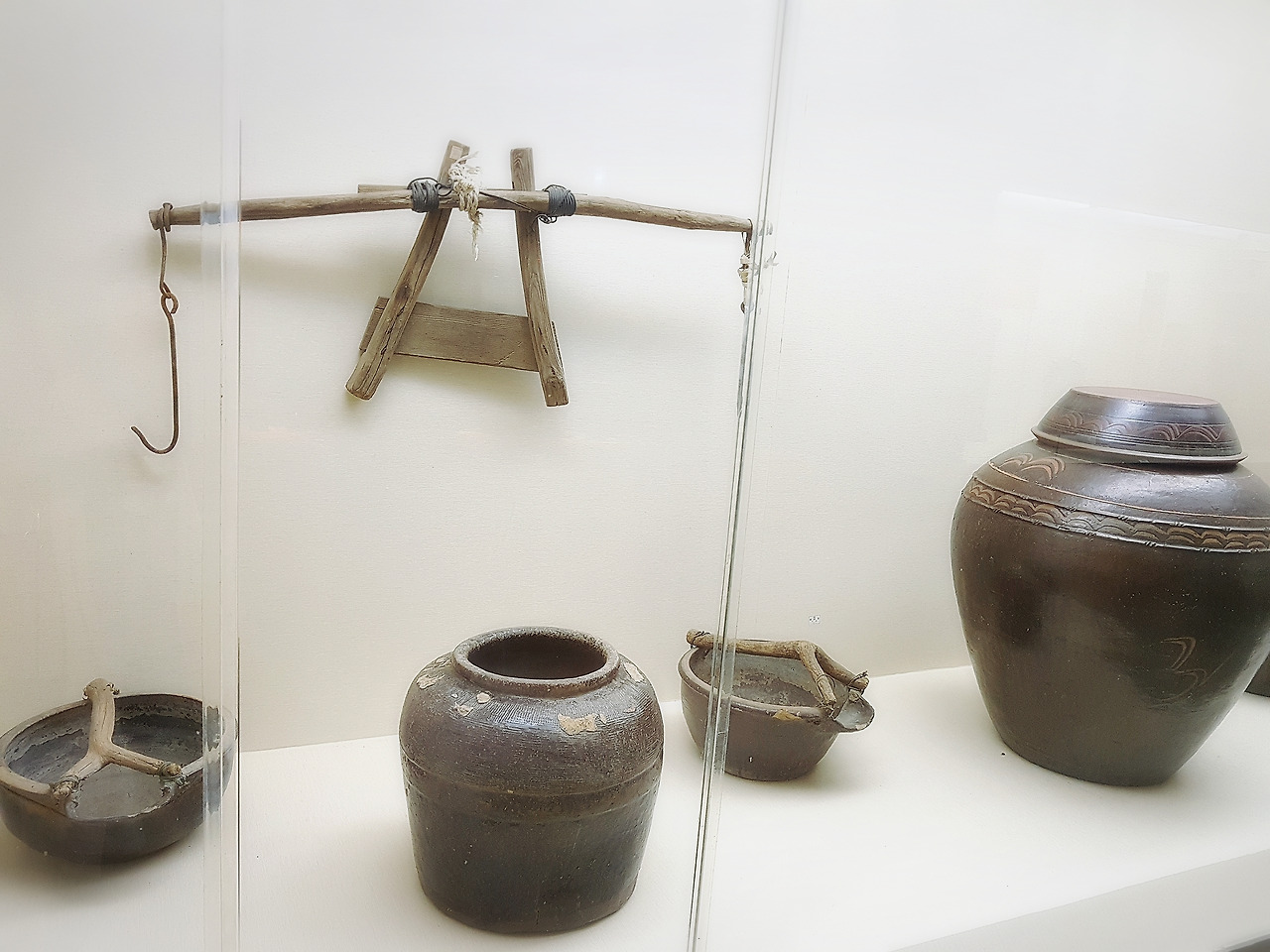 지하 전시관에 전시되어 있는 항아리들, 약탕기, 굴뚝 등등