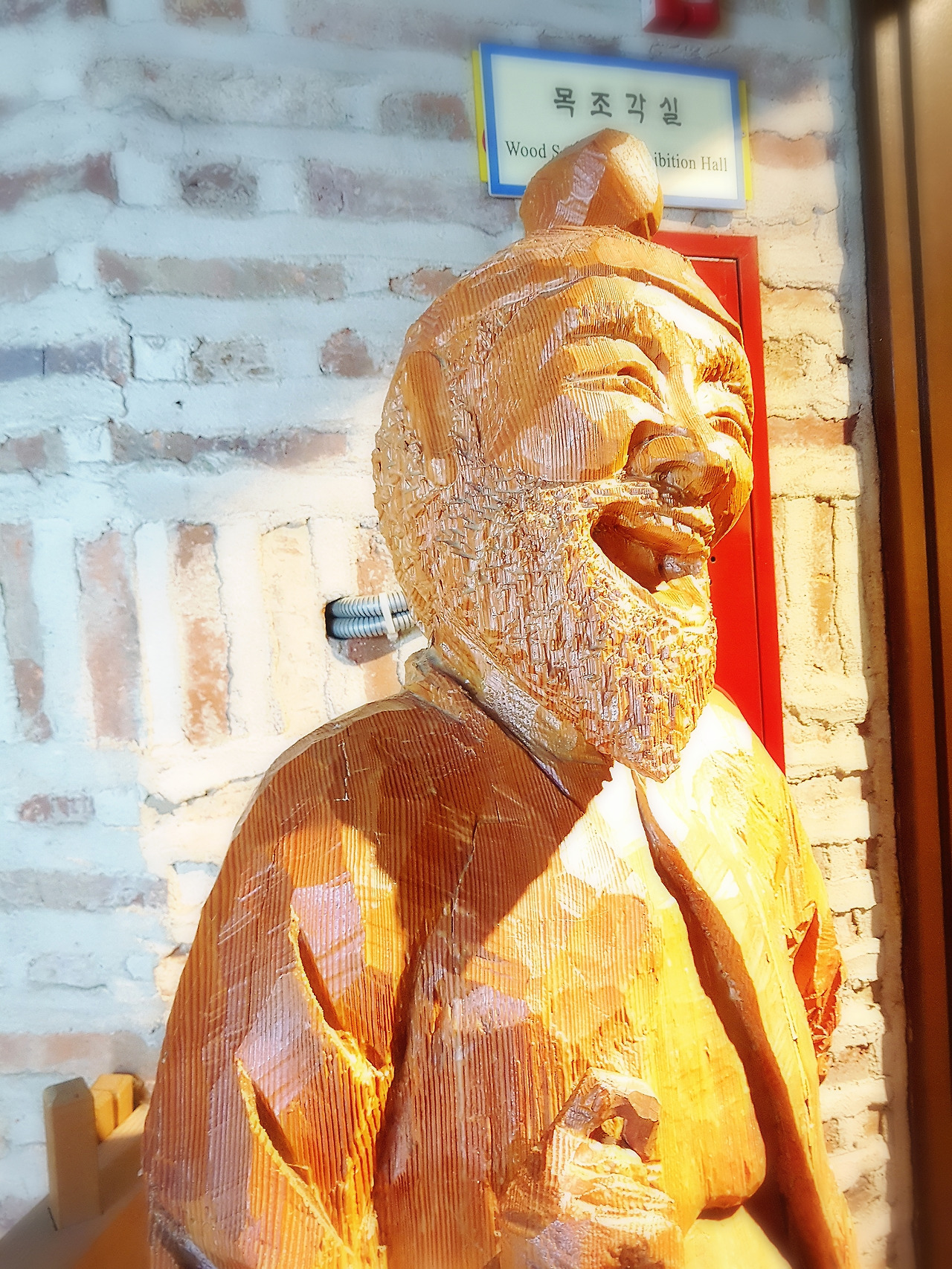 법상. 그리고 목조각실 입구에 있는 웃는 얼굴의 할아버지