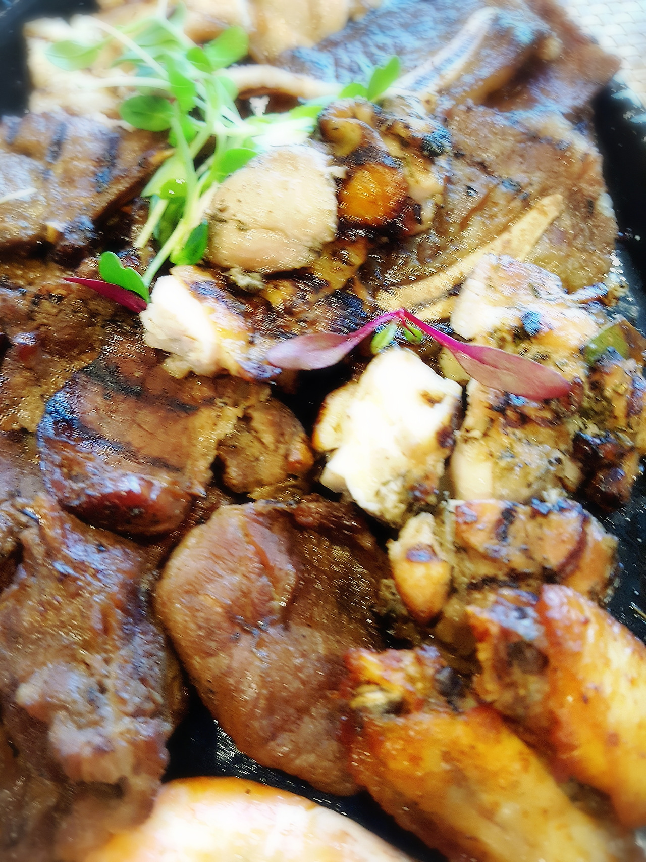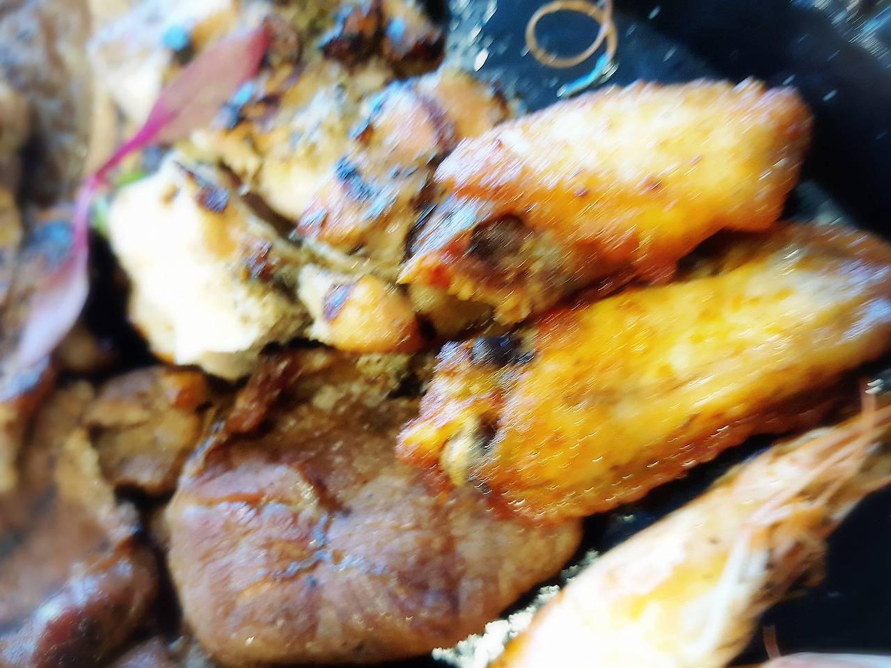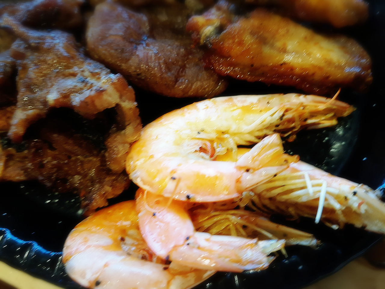 저녁은 가족 한상 차림. 여러 가지 고기 종류가 다양하게 크게 한 접시 담겨 나오네요.
