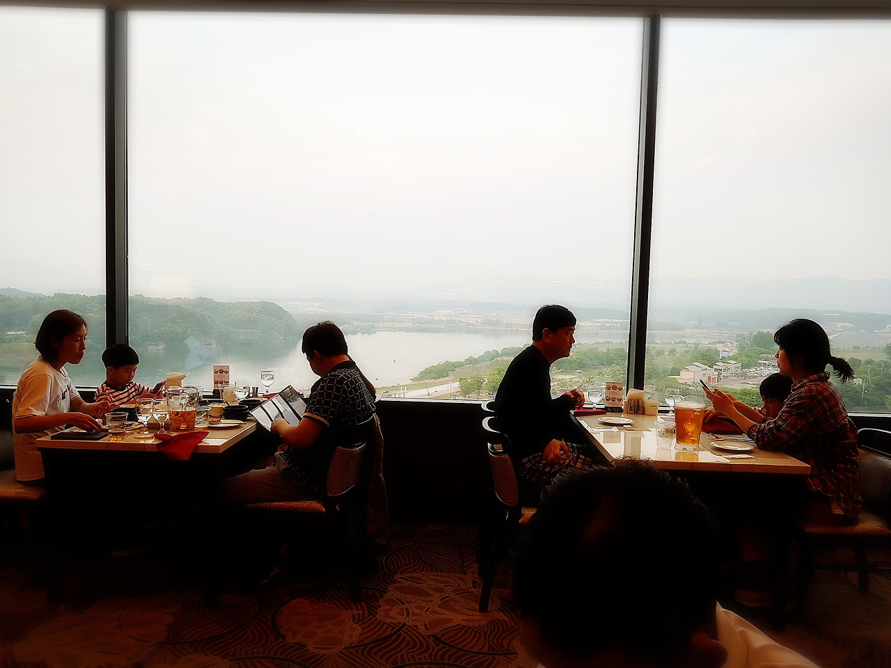 모두 가족 단위로 오네요. 호텔 주변 남한강, 신륵사, 요트장, 유람선, 캠프장 등의 풍경이 모두 보이는 전망. 아주 좋네요. ㅎㅎ