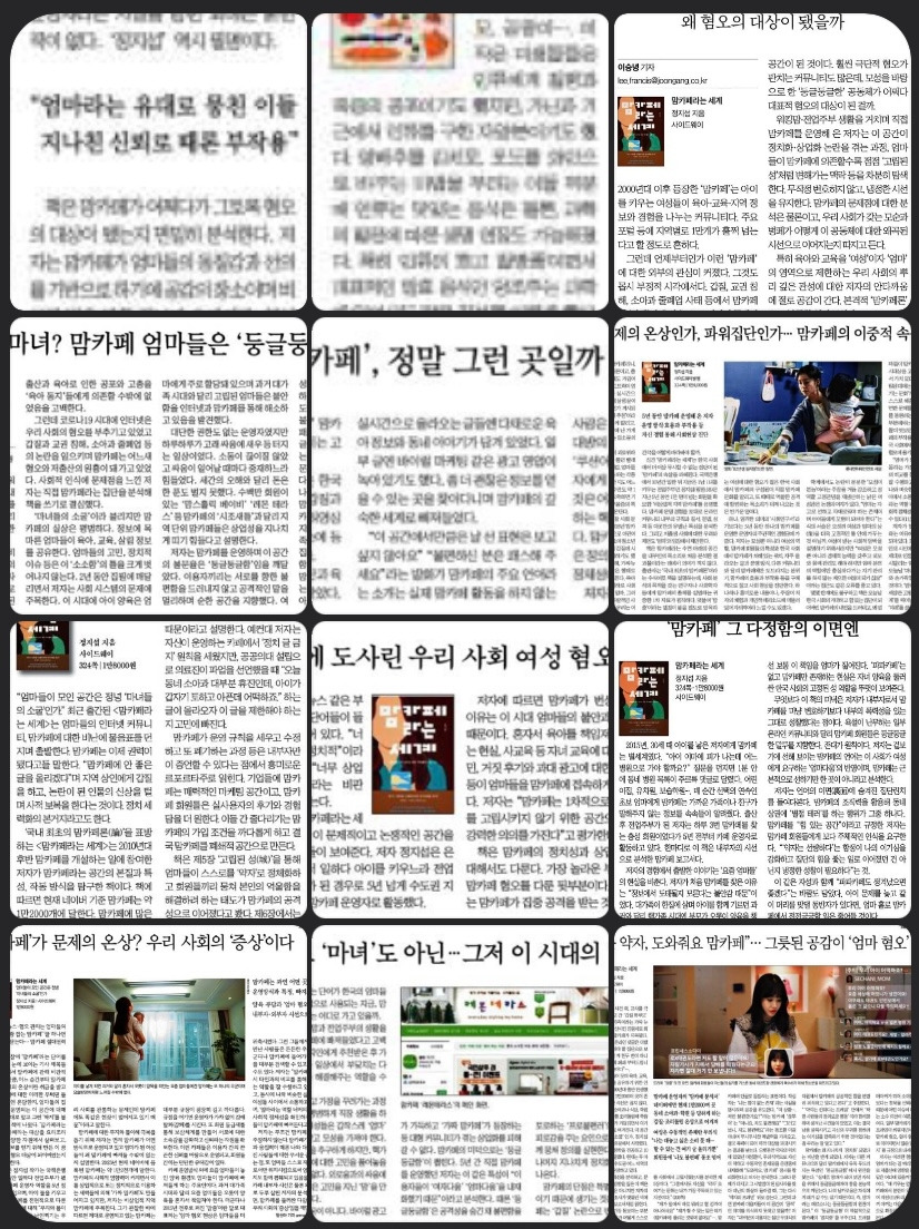 결혼을 하지 않아 아줌마의 세계가 낯선 그녀는 내 책 제목을 보고 “오잉?”이라는 말로 먼저 반응했다. 한참 식사를 하다가 아무 생각 없이 책 첫 문장을 보았다. 그리고 그제야 눈이 동그래지며 놀라서 말했다. “네가 맘카페 운영자였다고??? 헐. 세상에 세상에!!” 그리고 그녀는 그제야 본인이 어떤 커뮤니티 중독자라고 고백했다. 거기서 맘카페가 얼마나 공격받는지도 말해주었다. “응 그래. 그래도 난 알다시피 멀쩡한 사람이잖아. 너도 멀쩡하고. ”