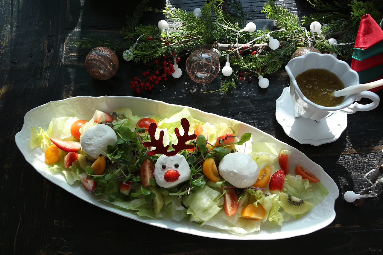 크리스마스를 기념할 루돌프 장식 부라타 치즈 샐러드