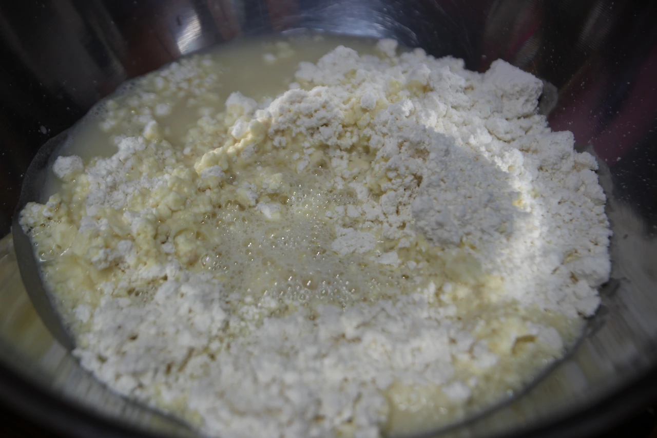 스탠 볼을 꺼내어 반죽을 시작하는 딸을 보니 잘 될지 걱정이 앞섰지만 미리 안된다고 부정의 언어를 내뱉을 순 없었다. 이스트를 따듯한 물에 풀어 반죽을 하고 반죽에 베이킹파우더를 추가로 넣었다. 그릇에 담아 잠시 뚜껑을 씌워 두라고 일렀다. 발효 없이 바로 해도 되지만 쫄깃하고 더 부드럽게 하기 위한 과정이다. 콧노래 부르며 지극정성으로 반죽을 하는 딸아이의 손놀림이 제법 익숙하다.