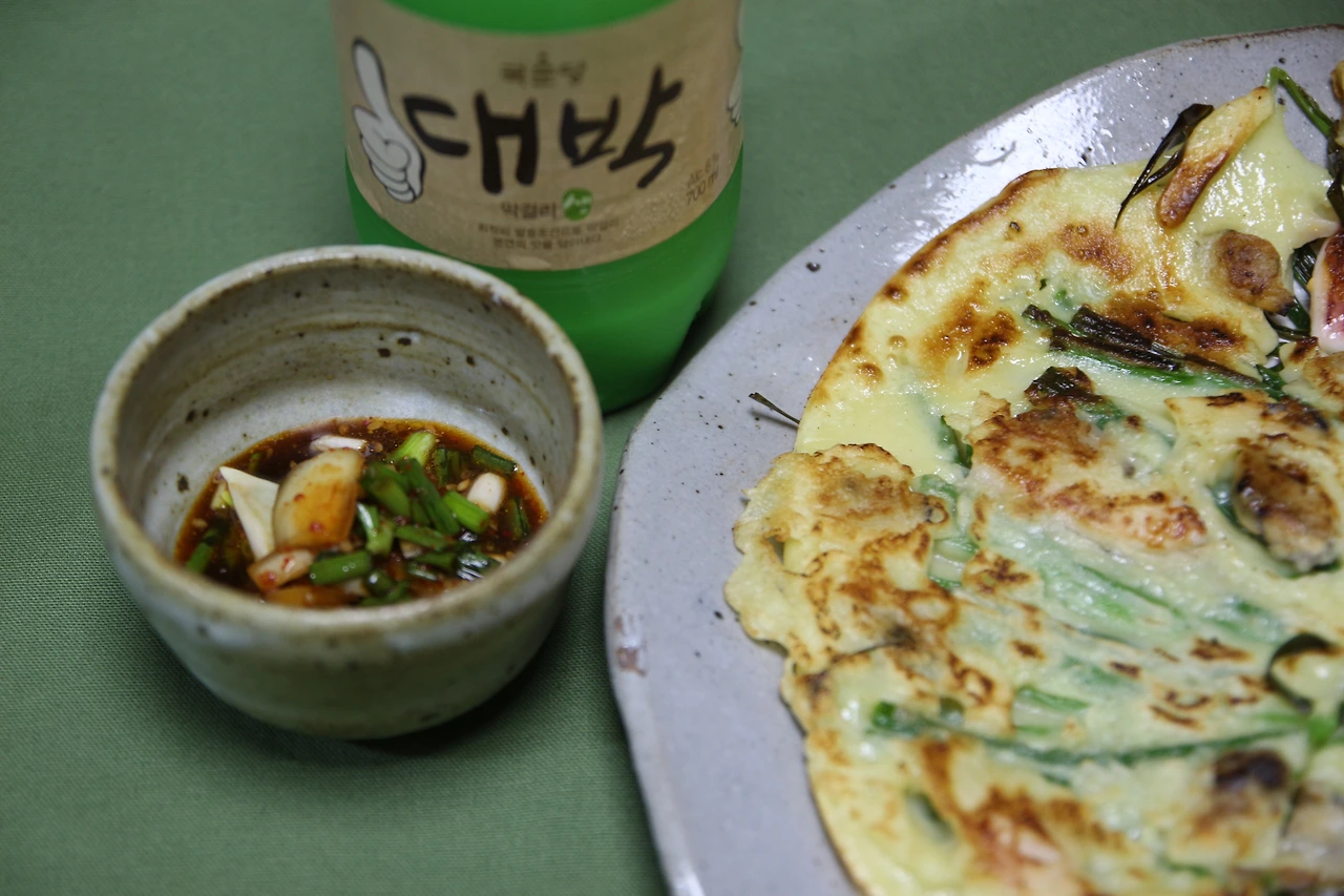 남편이 도서관 다녀오다 파전한다는 말에 막걸리를 한 병 사 왔다. 막걸리도 대박이다.