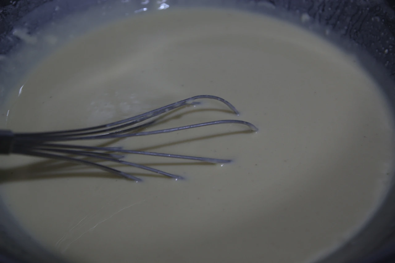 부침가루에 찹쌀가루 1큰술, 달걀을 넣어 반죽을 만든다.