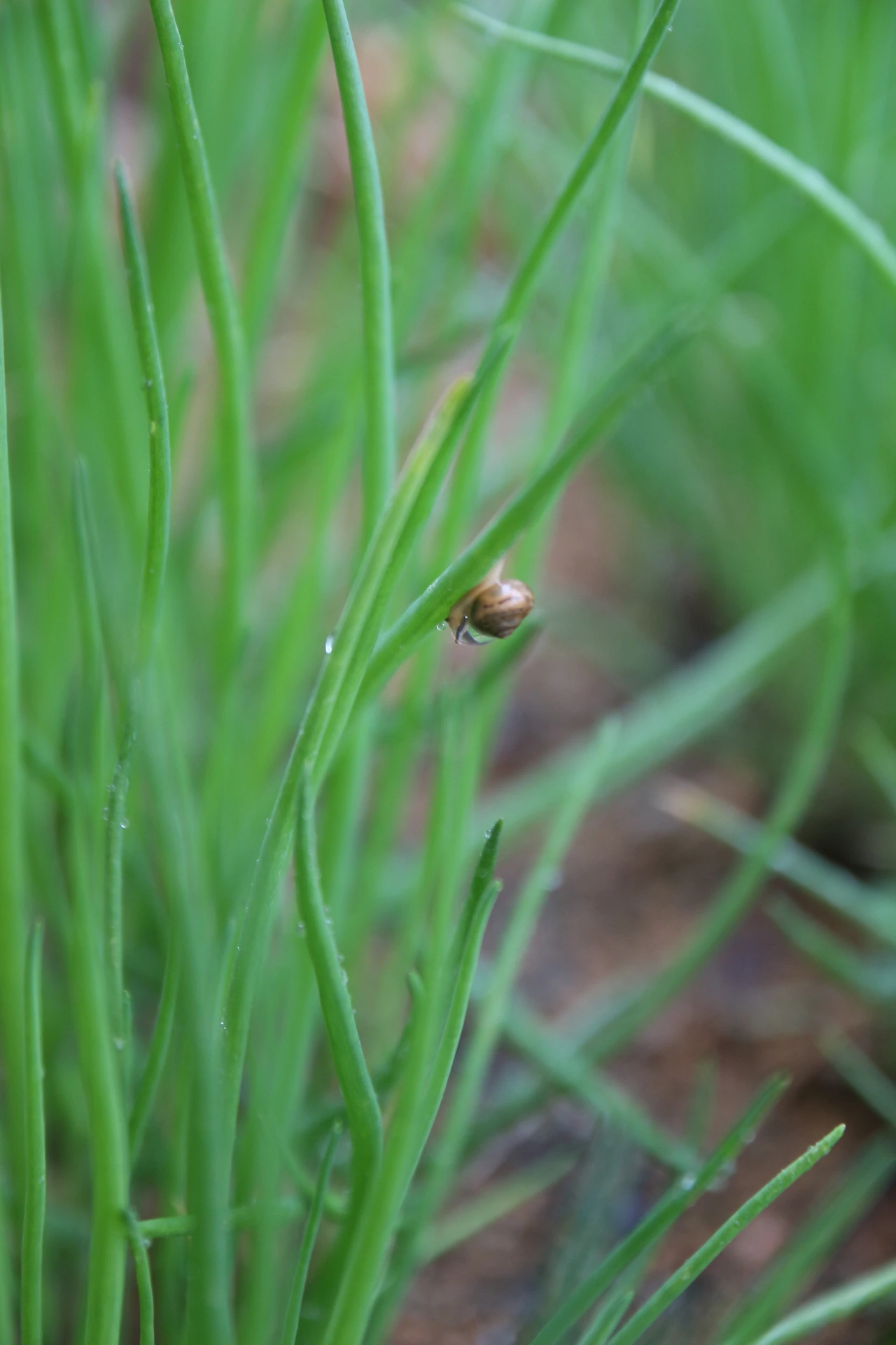 쪽파를 뽑으러 마당에 간다. 쪽파를 뽑으려니 송골송골 맺힌 빗방울이 어찌나 어여쁜지, 사진이라도 찍어달라고 뽐내는 듯하다. 빗방울 대롱대롱 달린 쪽파를 보고 있노라니 어디서 놀러 왔는지 달팽이 한 마리 쪽파에 매달려 있다. 지난겨울을 이겨내고 나온 달팽이 녀석이 대견하기만 하다.