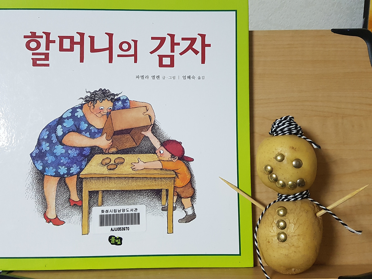 <할머니의 감자>는 할머니와 손주가 금요일 마다 만나 놀이를 합니다. 함께 요리를 하기도 하고, 술래잡기를 하기도 합니다. 어느날 감자를 이용하여 인형을 만들고, 나란히 놓아 둡니다. 그런데 어쩐 일인지 1주 2주가 흘러가도 손주는 오지 않습니다.