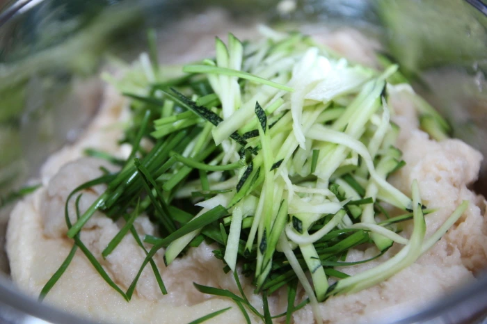 감자 5~6알, 소금 약간, 식용유, 호박약간, 부추한줌(또는 실파)
