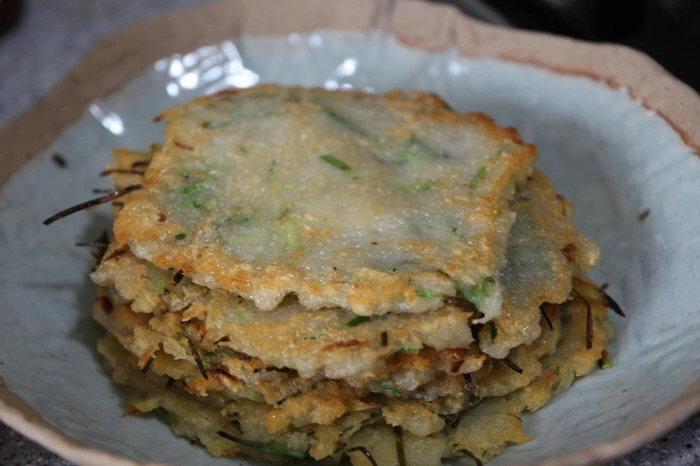 요리Tip: 보통 식당에서 판매되는 감자전은 쫄깃쫄깃하며 단단합니다. 이는 가루 전분이나 밀가루를 더 첨가한 맛이며, 만들기에 쉽기 때문입니다. 감자에 함유된 전분만으로 만든 감자전은 부드러워 잘 찢어집니다.