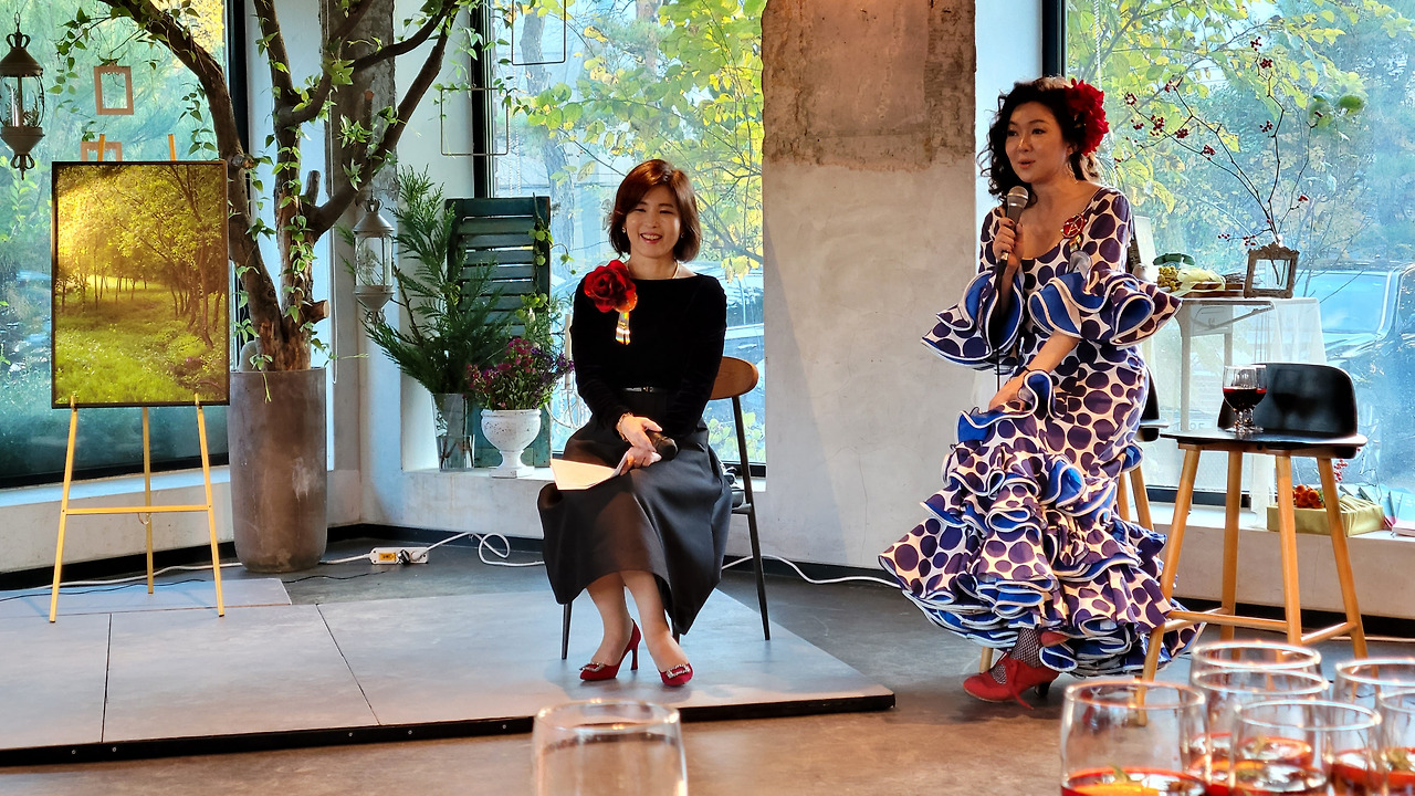 지난 11월 11일 '누구나 아츠'에서 주최하고 한국예술 플라멩코 문화원에서 후원한 <Spain을 입다> 행사가 있었는데요, 한국에서 즐기는 세비야 축제 Fiesta가 열렸어요. With코로나가 되었다고 하지만 인원을 제한하여 미리 선 예약제로 행사가 진행되었어요. 저는 '누구나 아츠' 대표의 특별 초대로 참석하게 되었지요. 그동안 사람과 사람이 만나는 일은 가급적 자제했었기에, 오랜만의 예술활동이 반갑기만 했습니다. 스페인 옷을 착용해 보는 것부터, 스페인 춤 플라멩코를 배워보는 시간, 스페인 음식으로 허기를 채우고, 멋진 춤과 노래를 느껴보는 일이 참으로 즐거웠습니다.