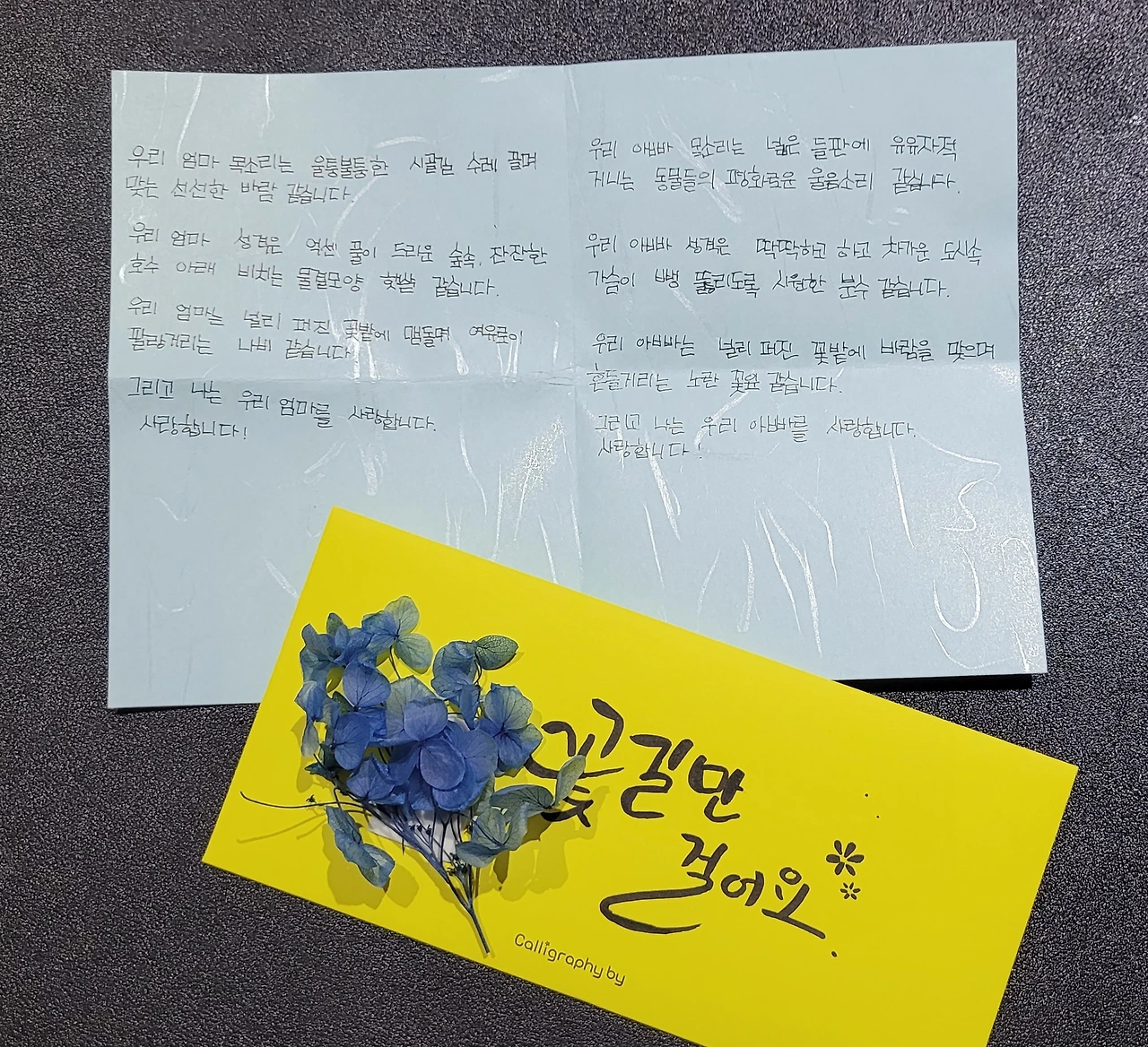 우리 엄마는 널리 퍼진 꽃한테 맴돌며