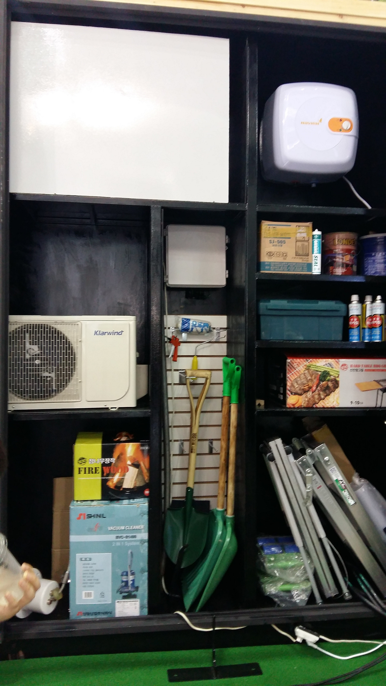 왼쪽_클라이밍 체험 / 오른쪽_농기구, 연장등을 수납할 수 있는 공간으로 이 디자인을 보고 연장보관 창고를 비슷하게 만들었다.