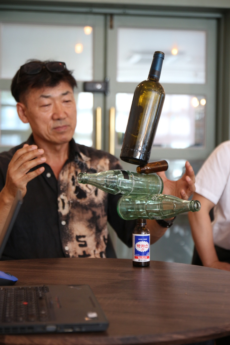 식사 후 바로 옆 테이블로 자리를 옮겨 밸런싱 아티스트 달인의 열강이 이어졌다. 학생들을 배려하여 학교에서 강의하시는 자료를 가지고 왔고, 열변을 토하시며 지나간 19년의 세월을 소개해 주었다. 45세에 취미로 시작한 돌 세우기가 세계를 다니고, 많은 이에게 영향력을 미칠지 몰랐다지만 중심잡기를 위해 철저히 체력 관리하며 키워가는 것을 보며 달인은 역시 달인이라는 생각이 든다.