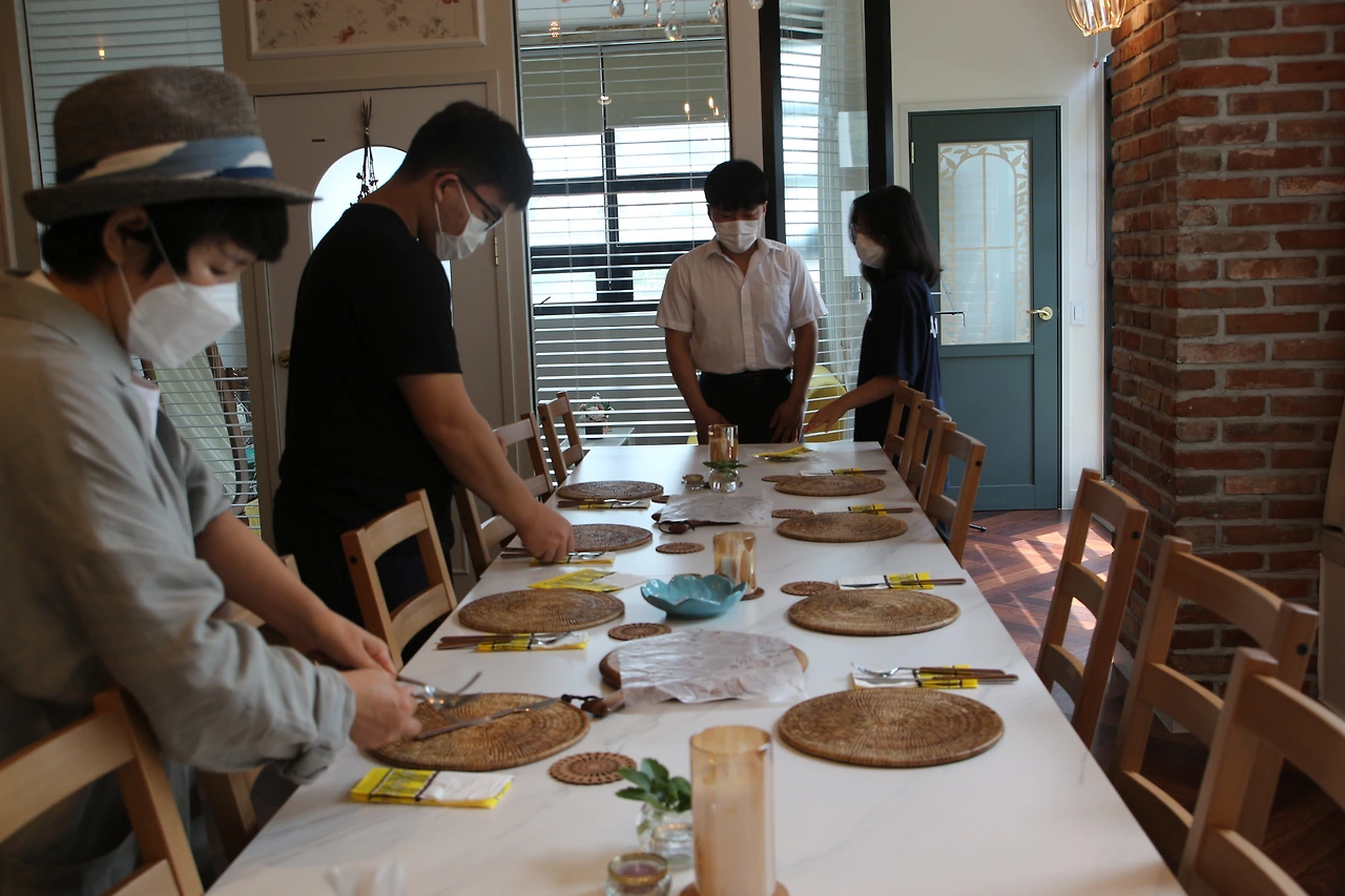 여느 때 같으면 한가로이 방구석을 즐겼을 토요일 오전, 분당으로 달려갔다. 주변에 주차를 하고 달인을 맞기 위한 테이블 세팅에 들어갔다. 아이들도 냅킨과 포크를 놓으며 함께 준비했다.