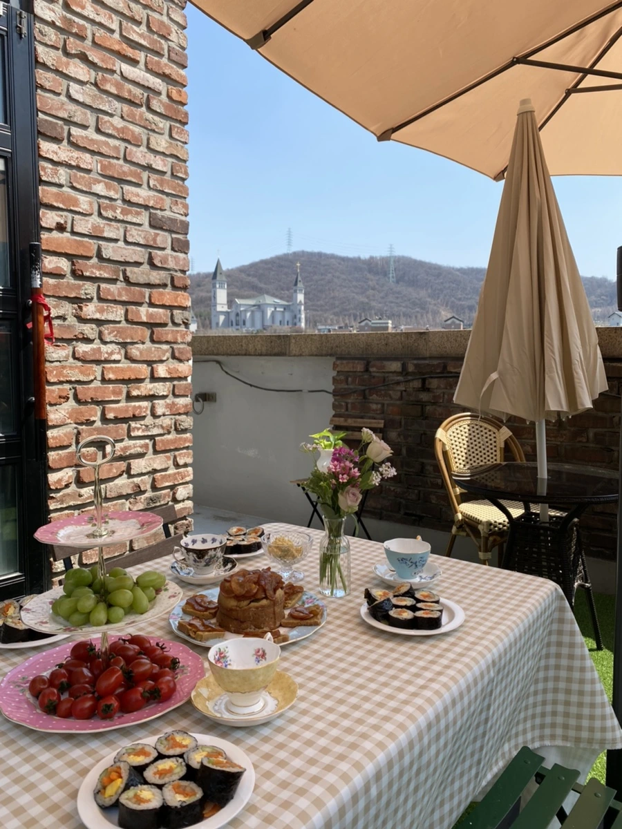 유럽풍의 동네를 한눈에 볼 수 있는 테라스 공간이다.