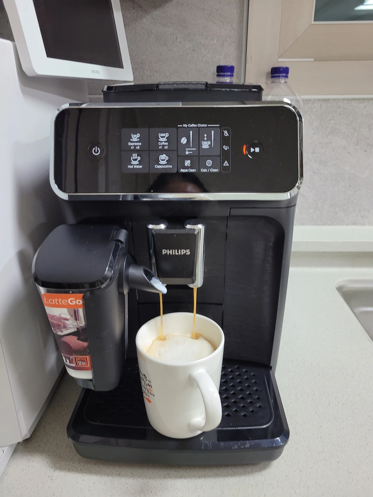 '커피머신에서 내가 좋아하는 블루마운틴을 마음껏 마시면 너무 행복하겠지???'