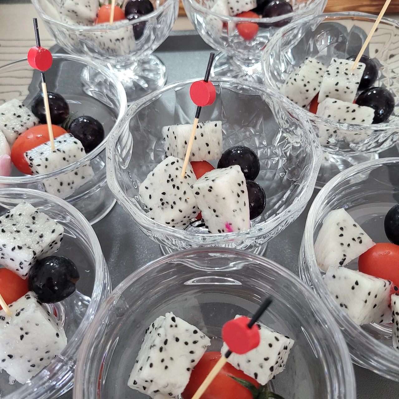 "이번 저의 친정아버지 장례에 함께 해주시고 마음 써 주셔서 감사합니다. (울컥한 마음에 잠시 숨을 고르고) 모두에게 감사하는 마음을 어떻게 전할까 생각하다가 귀한 음식으로 대접해 드리고 싶었습니다. 맛있게 드셔주시고, 오늘은 대접만 받으시면 됩니다. 그럼 과일부터 한 가지씩 서빙해 드리도록 하겠습니다. 즐거운 시간 되세요"