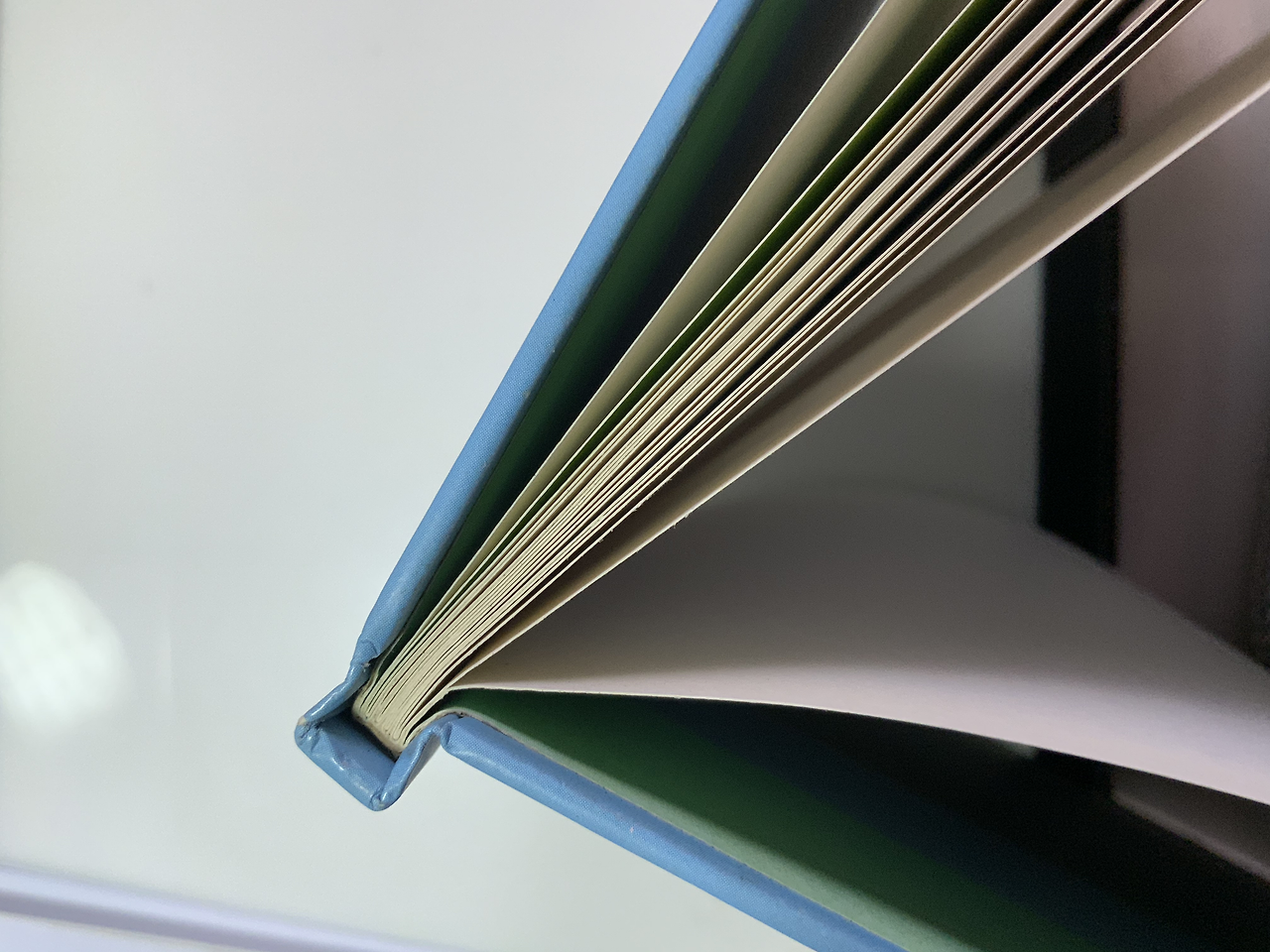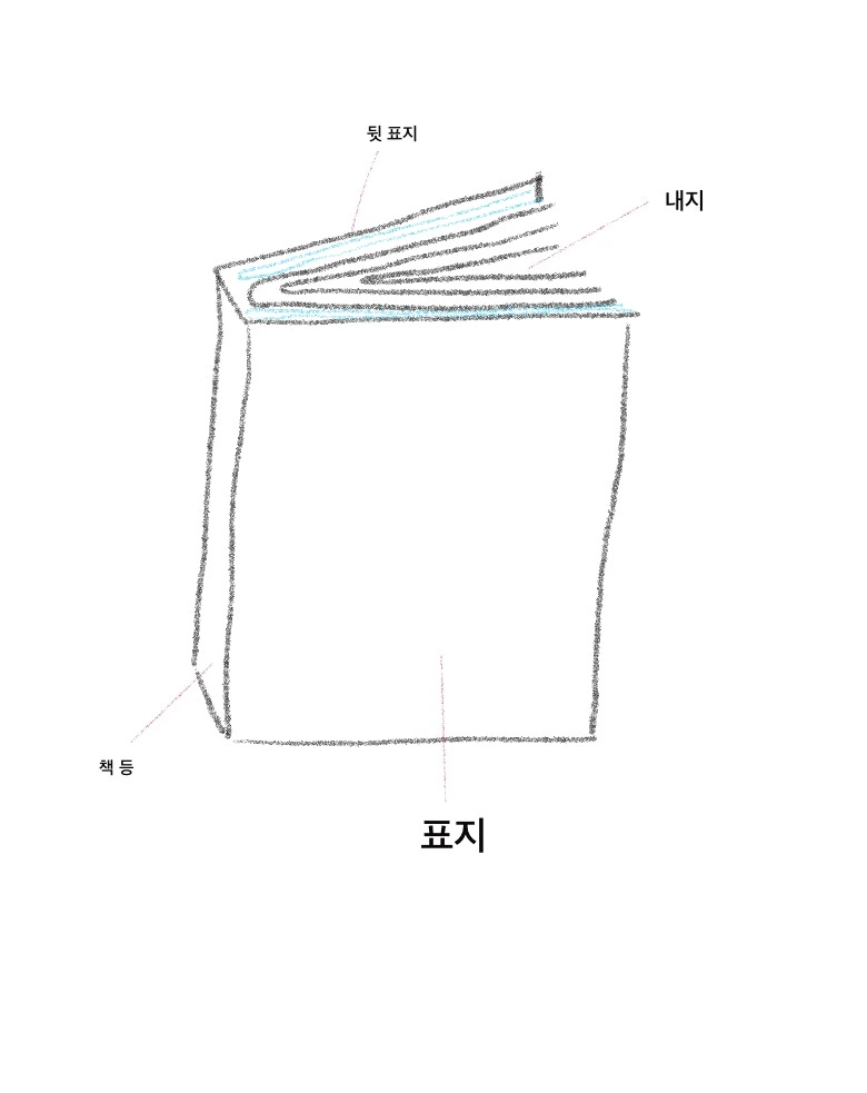 책에는 ‘면지’라는 게 존재해요.(일본어로 ‘도비라’라는 표현을 쓰기도 해요.) 면지는 내지와 하드커버를 연결해주는 역할을 합니다. 집에 있는 하드커버 책을 보시면 책의 앞면과 뒷면은 내지에 딱 고정되어 있는데 책등은 붙어있지 않다는 걸 보실 수 있어요. 왜냐하면 책 등까지 내지에 붙어 버리면 책이 잘 펼쳐지지 않아 보기 힘들기 때문이에요. 내지와 하드커버를 붙이는 방법은 크게 2가지가 있어요. 그림책은 내지의 양이 많지 않고 다른 책에 비해 종이가 두꺼워서 두 가지가 가능하답니다.