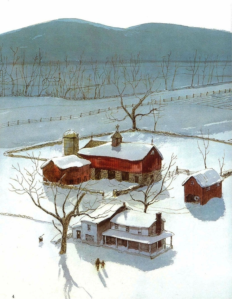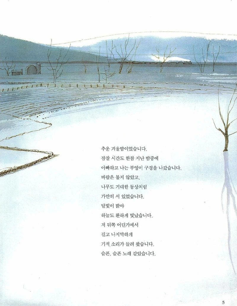 이 작품은 <부엉이와 보름달>이라는 작품이에요. 겨울에 부녀가 부엉이를 보러 숲으로 간다는 내용이에요.