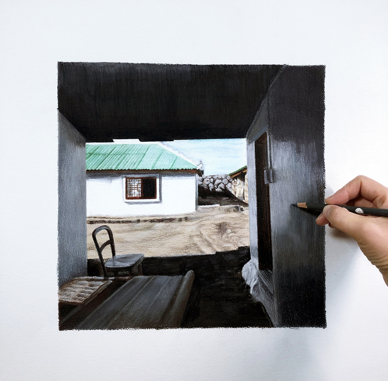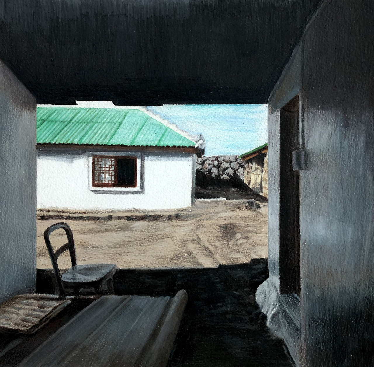 이른 아침 운동화 끈을 단단히 묶고 길을 나선다. 마을에 도착하여 발길 닿는 곳으로 걷다 보면 발길이 멈추는 곳이 있다. 나를 멈추게 한 풍경을 사진으로 담고 화실로 와서 그 풍경을 그린다. 요즈음 빛, 그늘, 밝음과 어둠에 대하여 생각하던 중 빛과 어둠이 함께 있는 풍경을 보게 되었다.