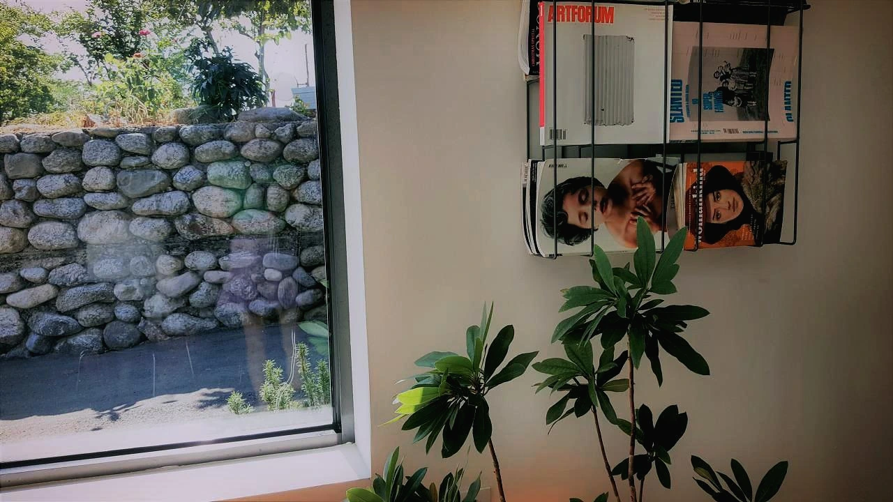 소문으로만 들었던 '봉브레드'도 들르려고 했는데, 주차를 할 수가 없어 그냥 돌아갔다. 나는 언제쯤 그 맛있다는 마늘바게트를 먹어보려는지 군침만 삼켰다. 대신 가는 길에 와이에이티라는 카페에 들렀다. 여기도 칠성조선소, 비단우유차와 더불어 속초에서 소문난 카페였다. 큰 마당이 있고 검은색 지붕이 모던하고 세련되어 보였다. 실내는 그리 크지 않았는데 몇 개의 테이블에는 이미 손님들이 자리해 있었다. 라임티와 뉴욕치즈타르트를 포장하고 하나 남은 테이블에 잠시 앉아 가기로 했다. 큰 창으로 보이는 돌담이 꼭 제주같다. 마을에는 예전부터 돌이 많았다고 한다. 타지에서 온 내게는 이곳에서 흔한 돌담도 예사롭지 않아 가만히 들여다보았다.