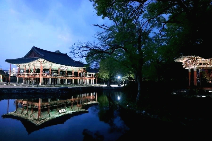 한낮에는 소풍온 학생들로 꽤나 정신없던 광한루원이 달 뜬 시간이 되니 그대로 아름답다.