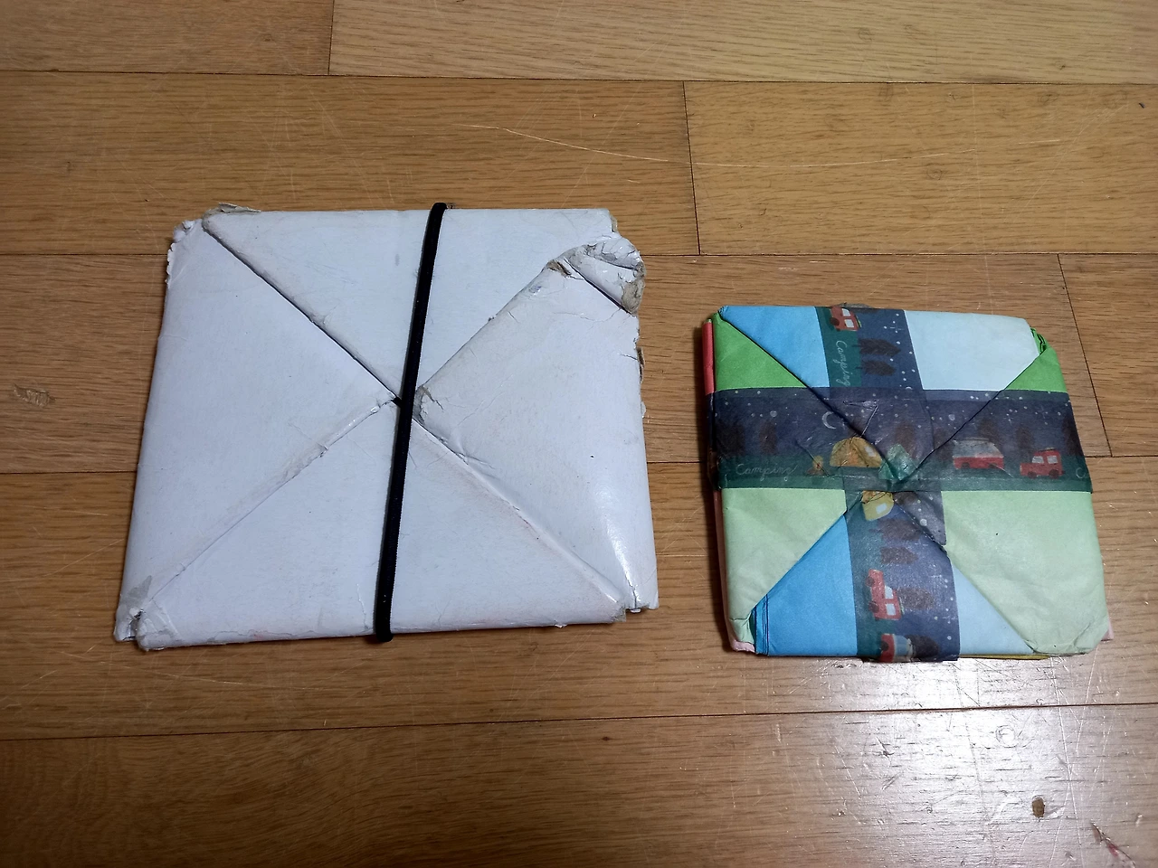 지난번까지는 사촌 형에게 물려받았다는 동물 모양, 로버트 모양 등 색깔도 다양한 여러 가지 플라스틱 딱지가 든 상자를 가지고 나왔는데 이번에는 직접 만든 종이 딱지였다.