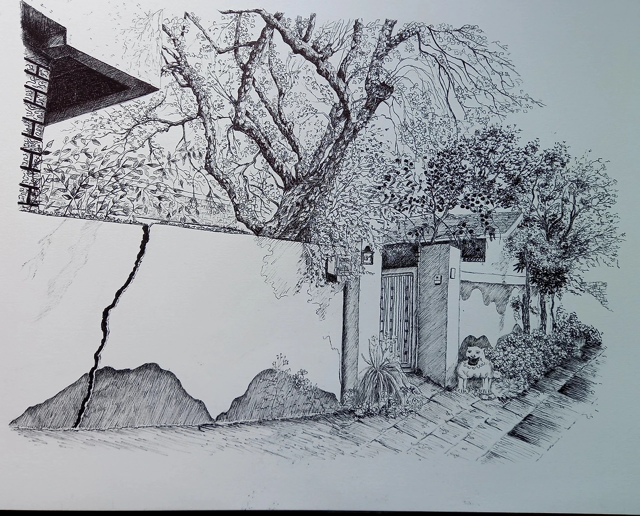 경주 읍성 골목의 감나무집 펜화 by빈창숙