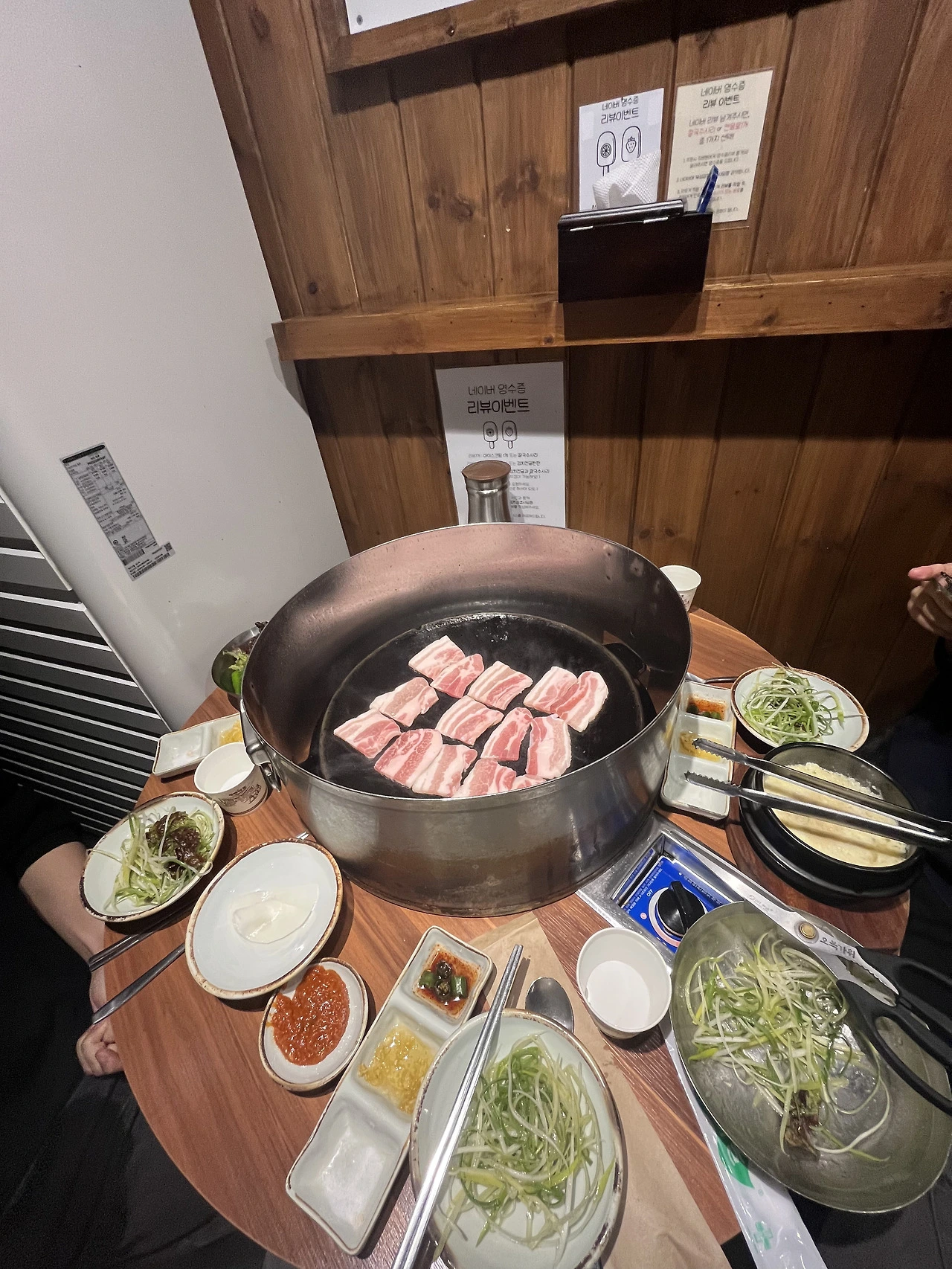 무쇠에다가 삼겹살과 김치를 함께 주는 가게였는데,