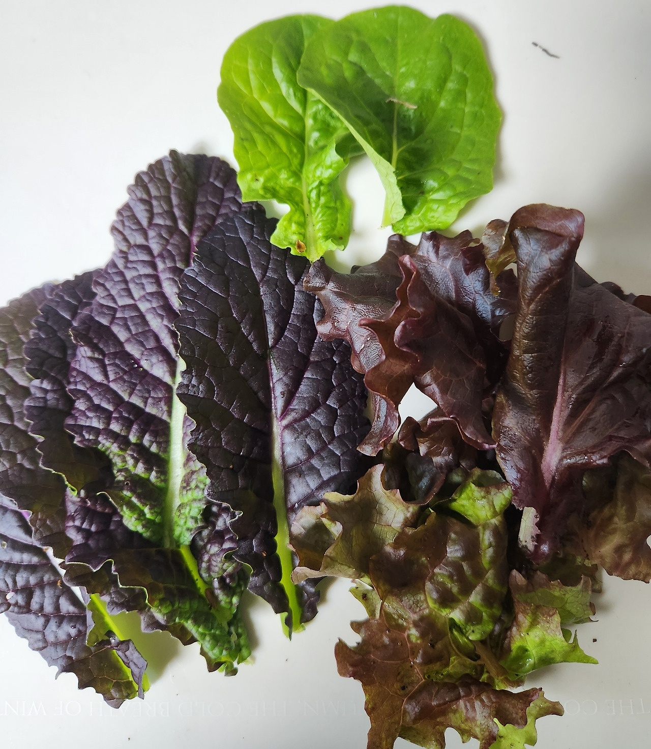 텃밭 1호에 먼저 심어 놓은 적상추, 청상추, 적겨자는 잘 자라고 있다. 모종을 너무 촘촘하게 심어 놓은 것 같다. 오늘 첫 수확으로 상추와 적겨자잎을 몇 장 뜯어 왔다. 내일 아침 샐러드에 넣어 먹어야겠다.
