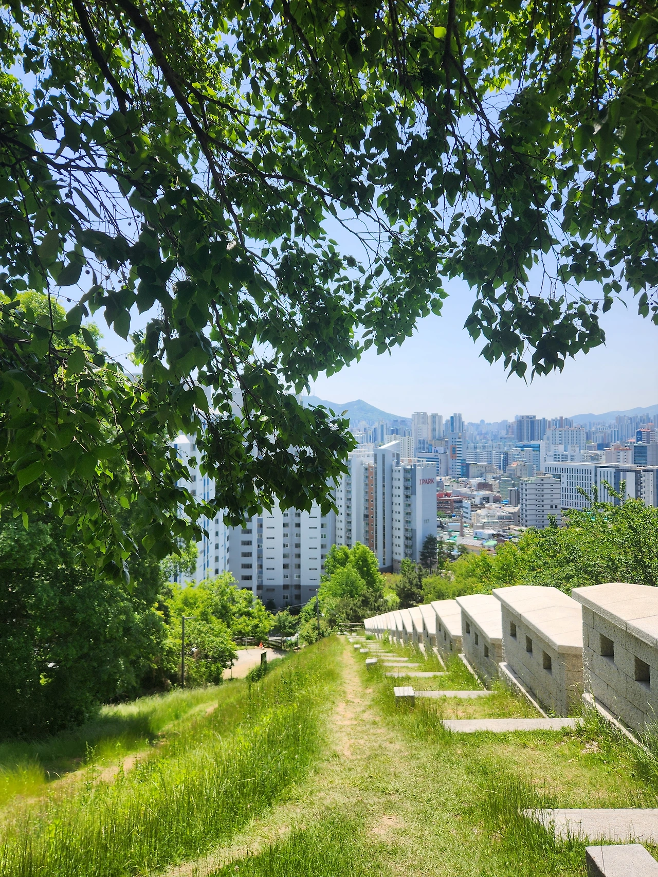 우리의 코스는 동래구청에서 내성지구대를 지나 동래현대아이파크 아파트 사이로 난 길에서 시작했다. 아파트 단지 안으로 들어가는 길은 지도에 나오지 않았다. 지도에 난 길을 따라가려고 하니, 친구가 “저 쪽으로 가도 될 것 같아”라고 했다. 지나가는 어르신께 동래읍성을 가려고 하는데 여기로도 길이 있나요?라고 물었더니 어르신은 대답대신 자신을 따라오라고 손짓했다.