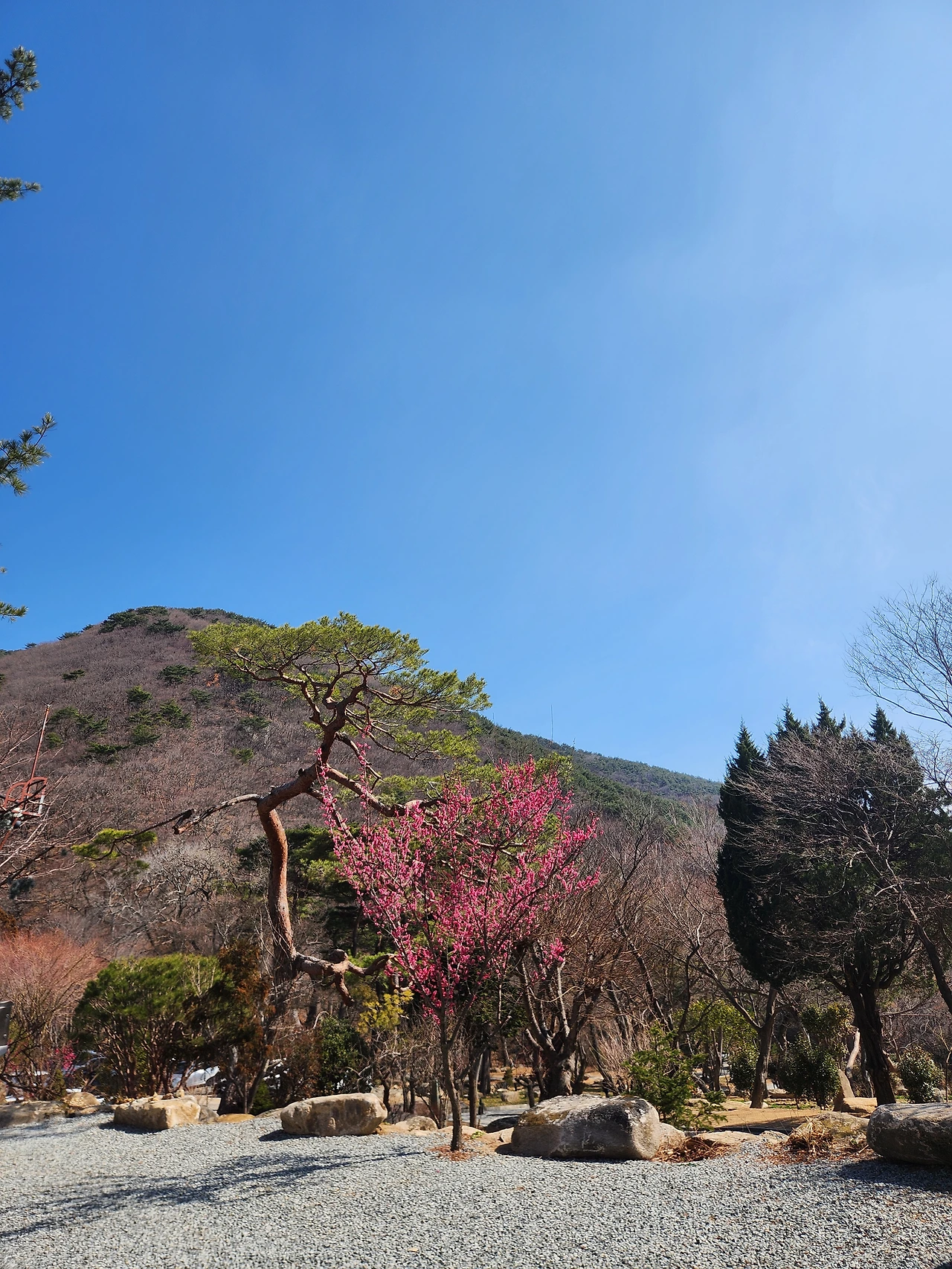 절 앞마당에는 수국이 심어져 있었다. 여름에 여기 다시 올 수 있을까? 파란 수국 장관을 보고 싶긴 하지만 하산길의 긴긴 내리막을 생각하니 자신이 없다. 꼭 온다면 아래서부터 올라오는 게 아니라 금정산 동문에서 능선길을 따라오다가 아래로 내려오는 코스라면 고려해 볼 수도 있다.
