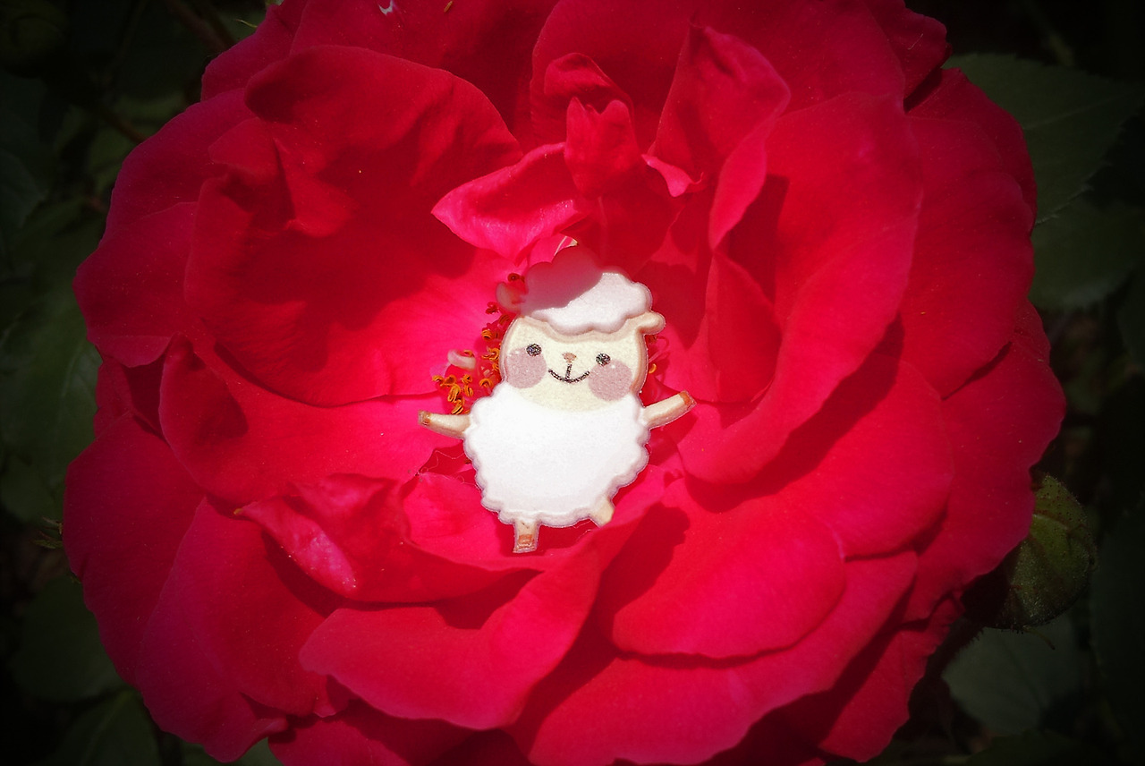 귀여운 양 한 마리가 장미꽃 위에 '포옥~'하고 빠져있다. 이불속 가장 깊은 자리에 자리 잡은 듯 장미 꽃잎 깊숙이 파묻혀 미소 짓고 있는 이 양은 3년 전 초등학생 4학년이었던 지영이가 '단빛' 사진 수업 때 들고 온 동물 스티커이다. 지영이는 이 사진의 제목을 '장미 침대'라고 지었다.