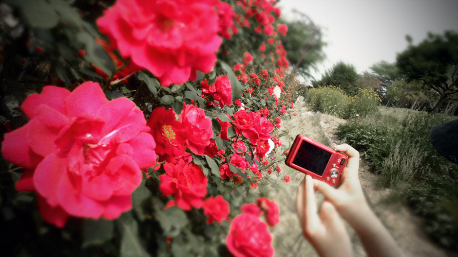 어떤 꽃이 나에게 의미 있게 다가온다는 것은 그 꽃에 대한 선명한 기억이 있다는 것이다. 장미꽃을 찍는 모습마저 장밋빛으로 물든 이 사진은 당시 6학년이었던 원비의 사진이다. 그리고 추억을 담는 모습이 다시 추억이 된 이 사진의 제목은 '기억 속으로'이다.