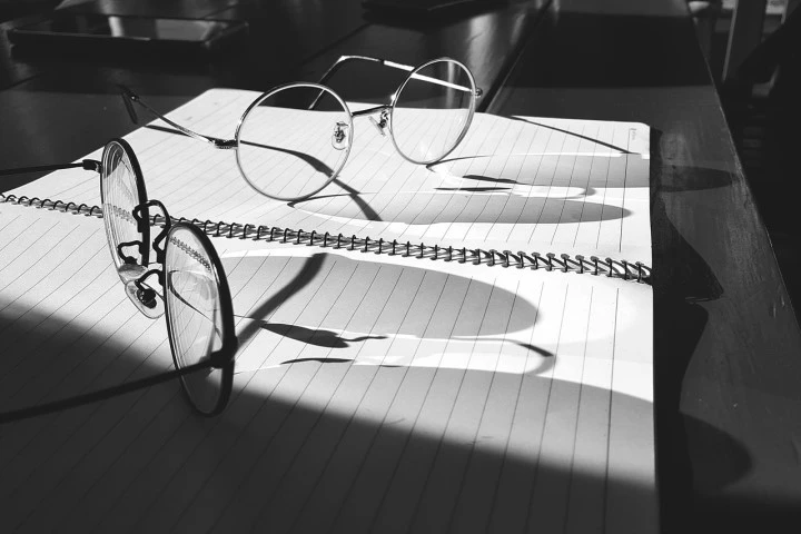 이 안경이 바라보고 있는 방향이 바로 안경 주인이 세상을 바라보는 관점의 방향이다. 각자의 안경은 노트에 다른 방향, 다른 모양의 빛을 비춘다. 사진 속 노트가 세상이라면 아쉽게도 두 시선이 교차하는 세상의 교집합은 없다. 그러고 보니 연습장의 제본 스프링도 둘은 절대 만날 수 없다고 경고하듯 경계 친 가시철사 울타리 같다. 중2였던 서연이는 세상의 어디에서 이런 관점의 차이를 느꼈던 것 일까?