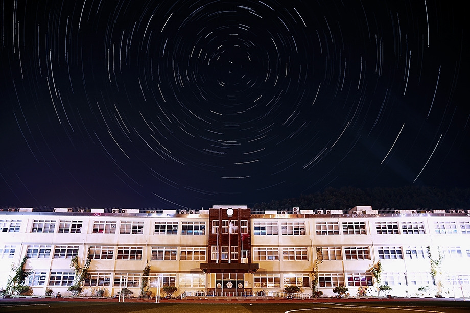 그리고 한 시간 가량 촬영하여 별 일주 궤적 아래 낭만적인 학교의 모습을 얻었고 나는 그 해 이 사진을 크게 인화하여 학교 역사관에 전시하였다.