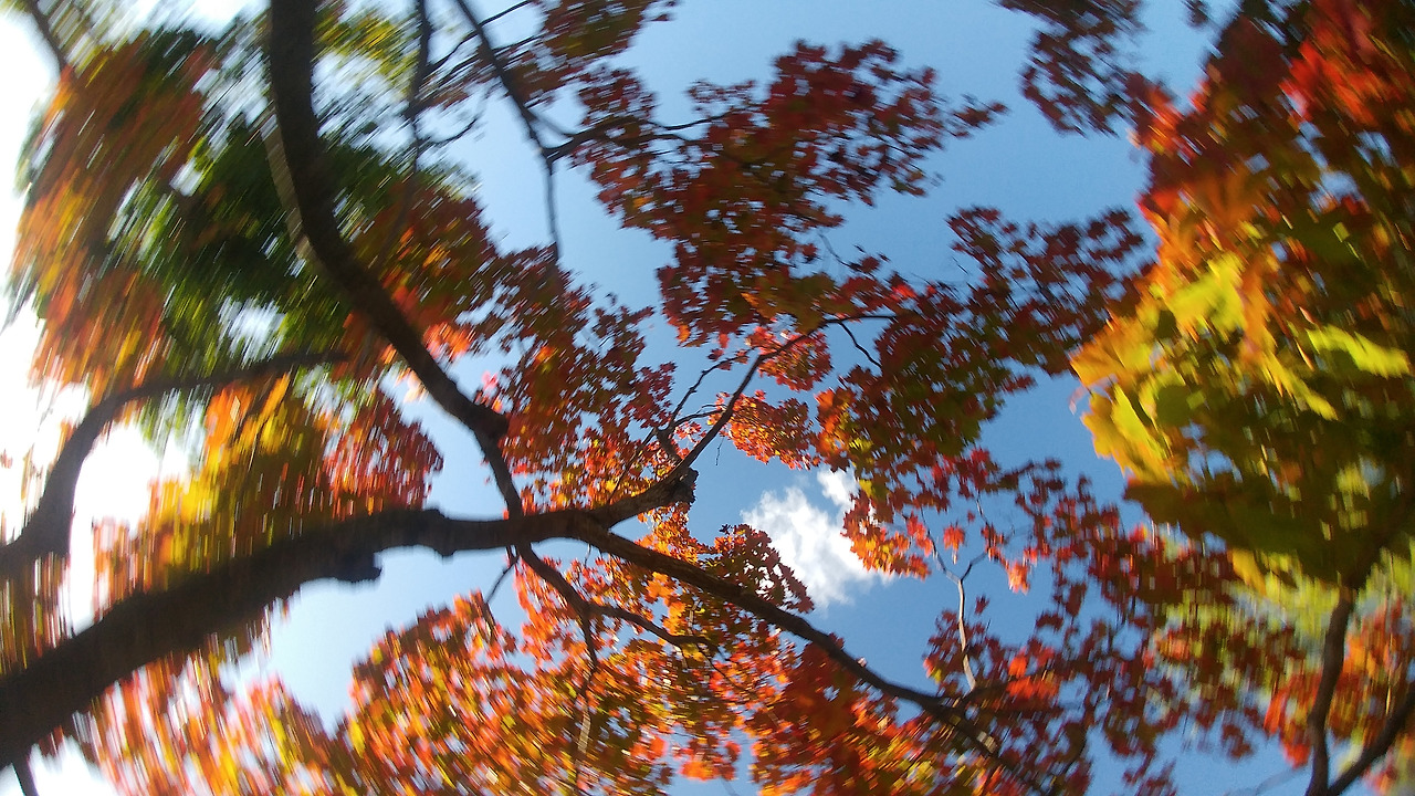 초등학생 소명이가 찍은 사진 -소용돌이-색다른 시도로 촬영한 소명이의 사진들은 전혀 예상치 못한 결과물을 만들어내기도 했다. 단풍나무 아래서 카메라를 회전시키며 촬영한 '소용돌이'사진이 그러한 경우였다. 하늘과 맞닿은 나무의 끝이 중심이 되어 울긋불긋한 단풍이 소용돌이의 궤적으로 담긴 사진이었다. 새로운 시도도 좋았지만 명확하게 찍힌 중심 덕분에 미적인 구성까지도 높다고 판단되어 소명이에게 이 사진을 전시회에 출품하자고 이야기했다.