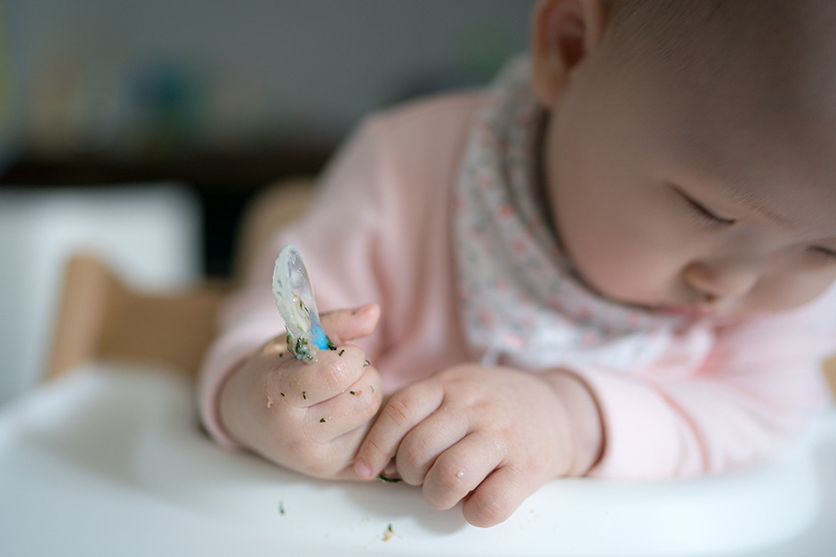 눈을 꿈뻑이며 식탁에서 겨우 버티던 아가는